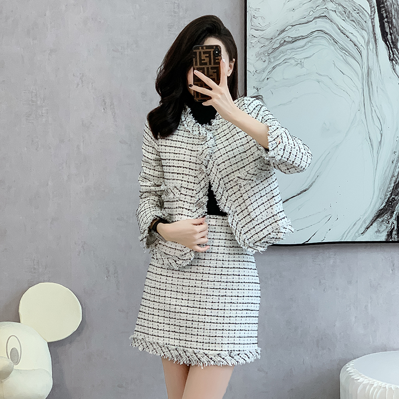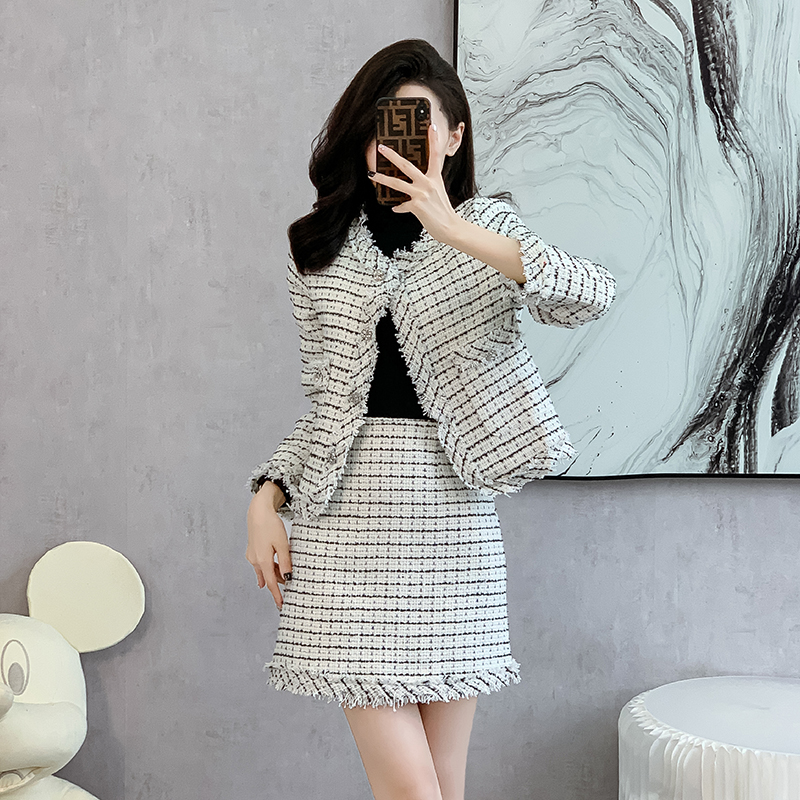 FA52068# 高雅织带小香风外套半裙套装女秋季新款气质修身上衣短裙 服裝批發女裝批發服飾貨源