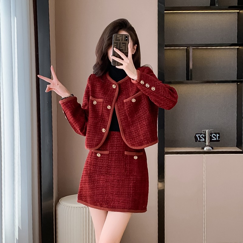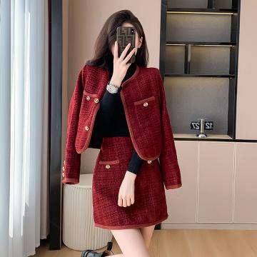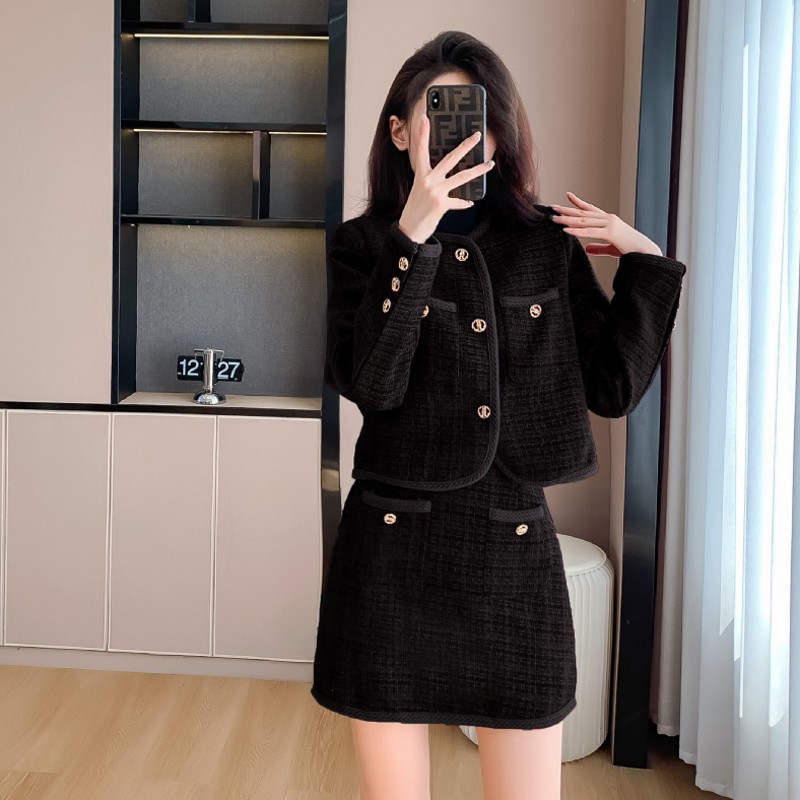 FA52074# 小香风外套秋装搭配一整套新款法式两件套气质粗花呢上衣半身裙 服裝批發女裝批發服飾貨源