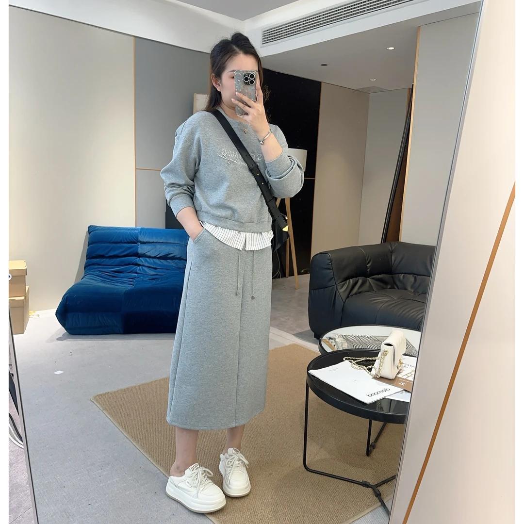 FA52076# 小个子穿搭一整套秋季新款显瘦卫衣拼接衬衣下摆半身裙两件套装女 服裝批發女裝批發服飾貨源