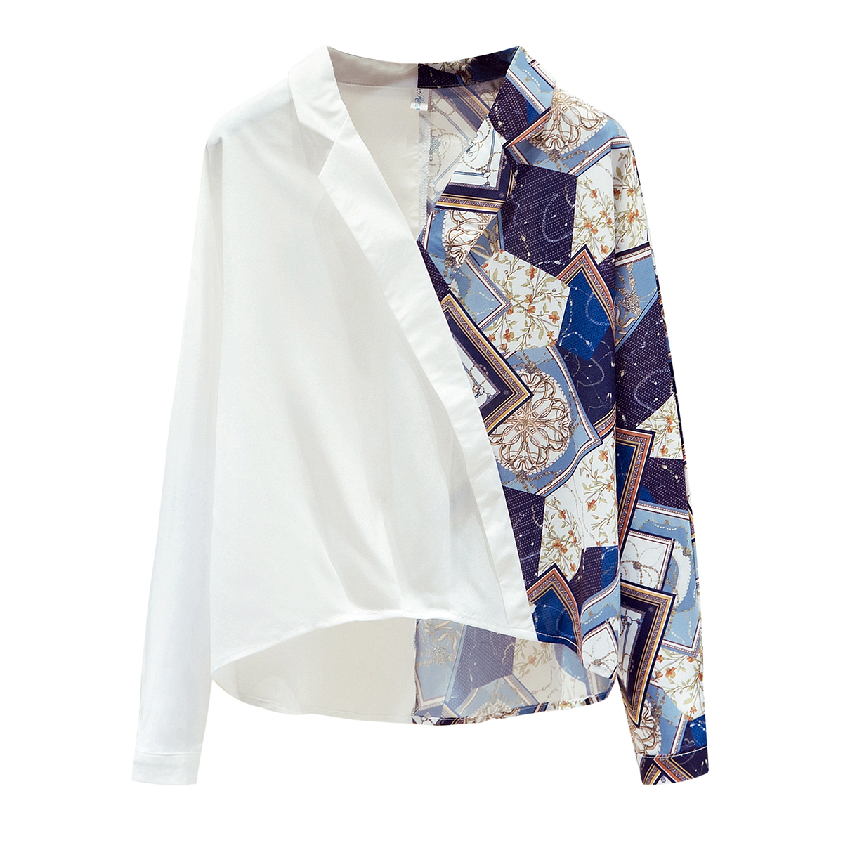FA52746# 撞色拼接V领衬衫女春季2026款气质雪纺长袖上衣设计感小众 服裝批發女裝批發服飾貨源