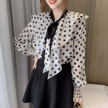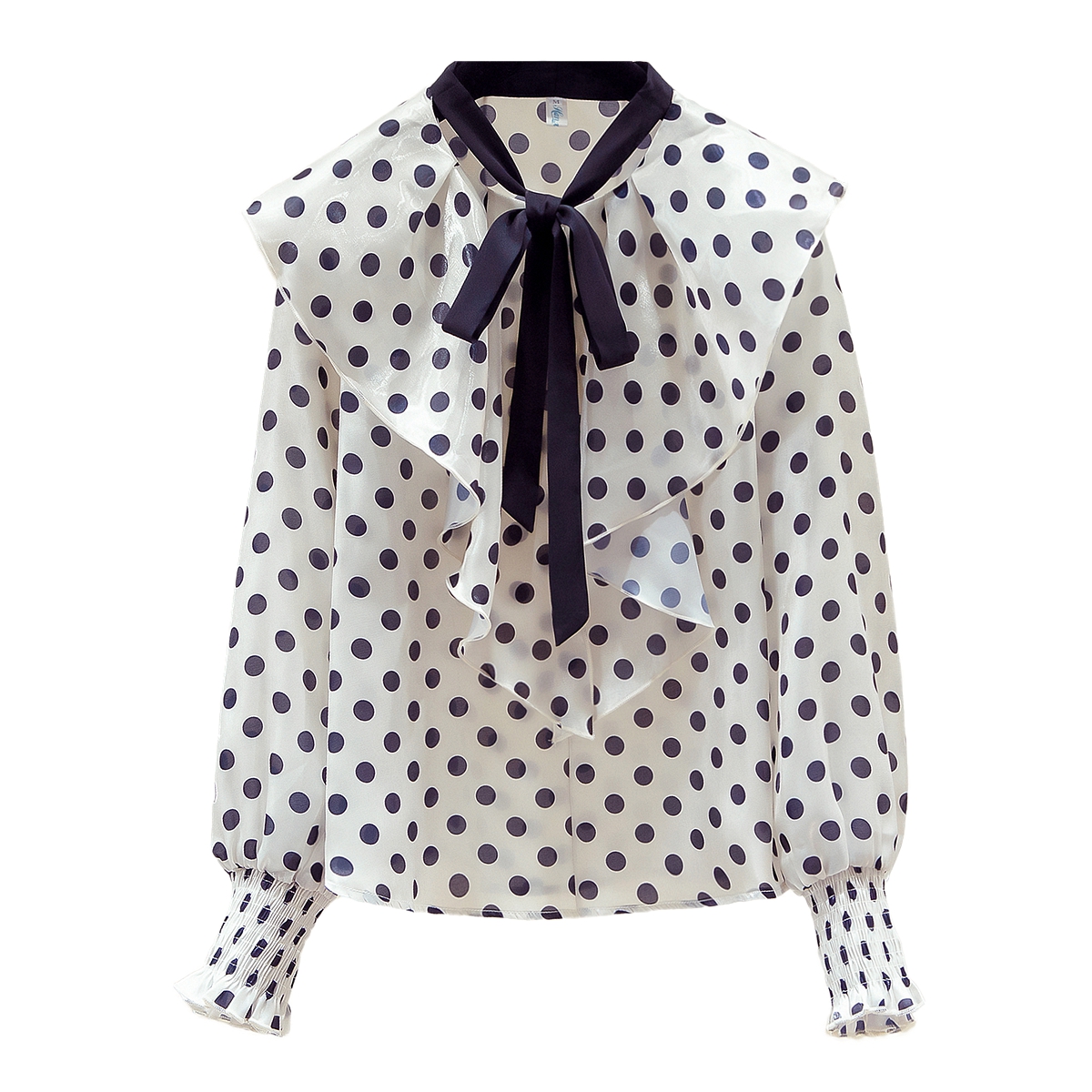 Home > 长袖雪纺衫、衬衫、上衣 > FA52749# 2026设计感系带领荷叶雪纺衫灯笼袖洋气复古波点小众衬衫女早春装 服裝批發女裝批發服飾貨源