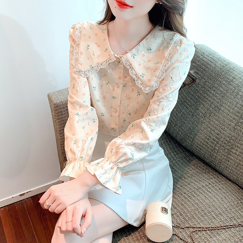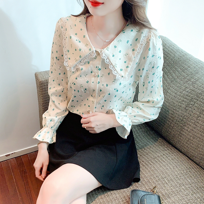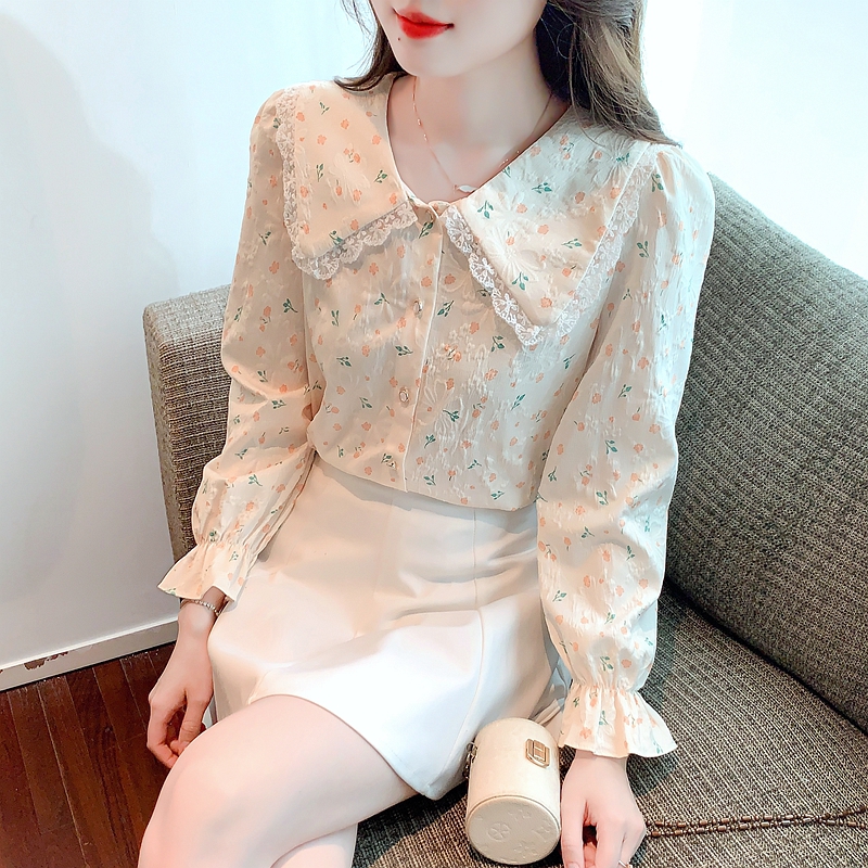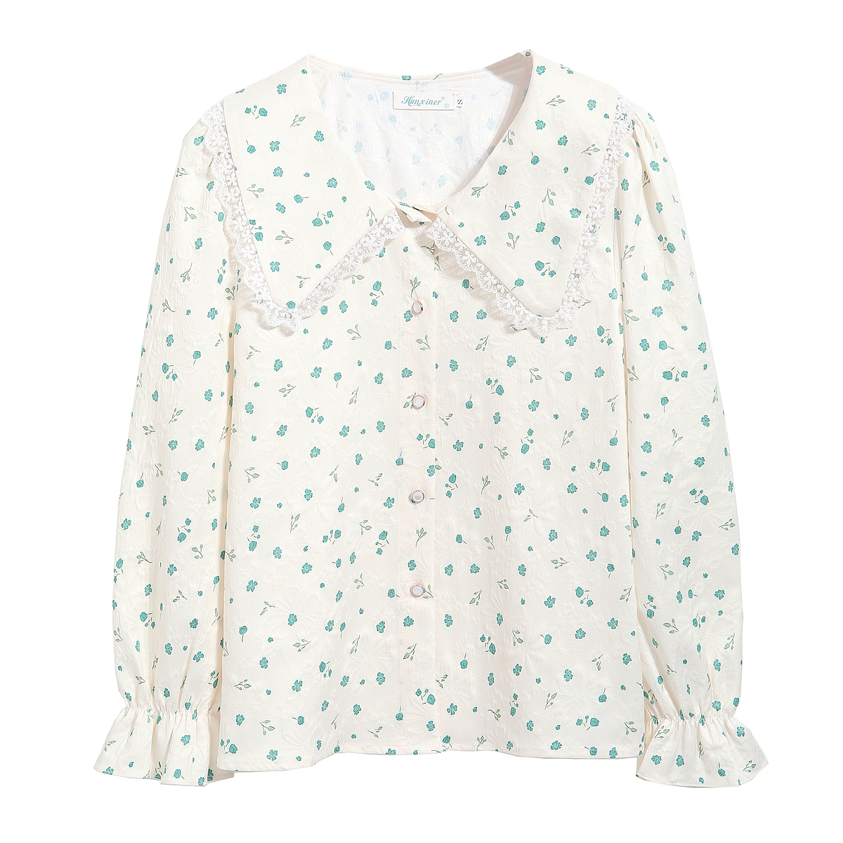 FA52751# 法式娃娃领碎花衬衫上衣女2026年春季新款小清新甜美泡泡短袖衬衣 服裝批發女裝批發服飾貨源