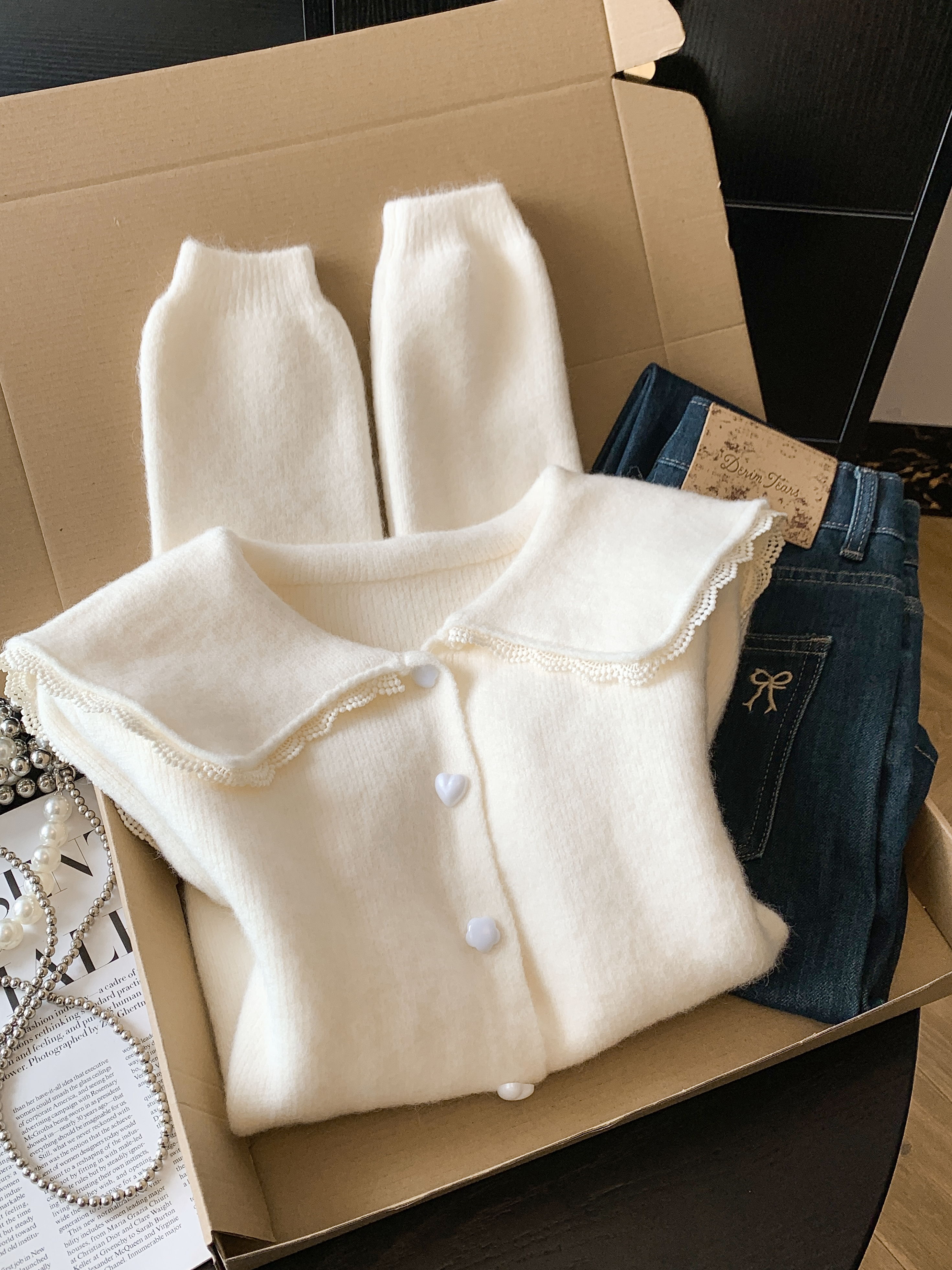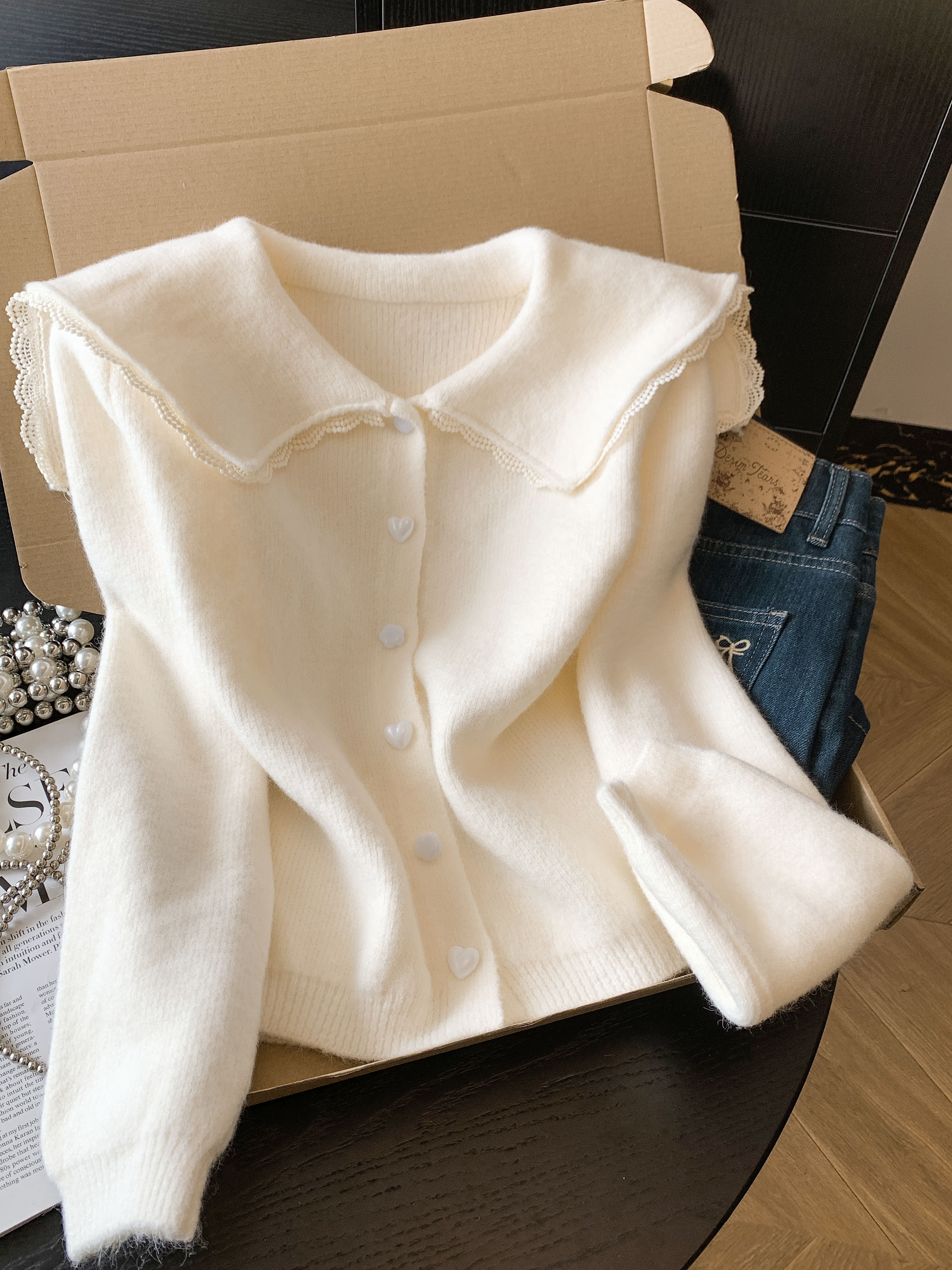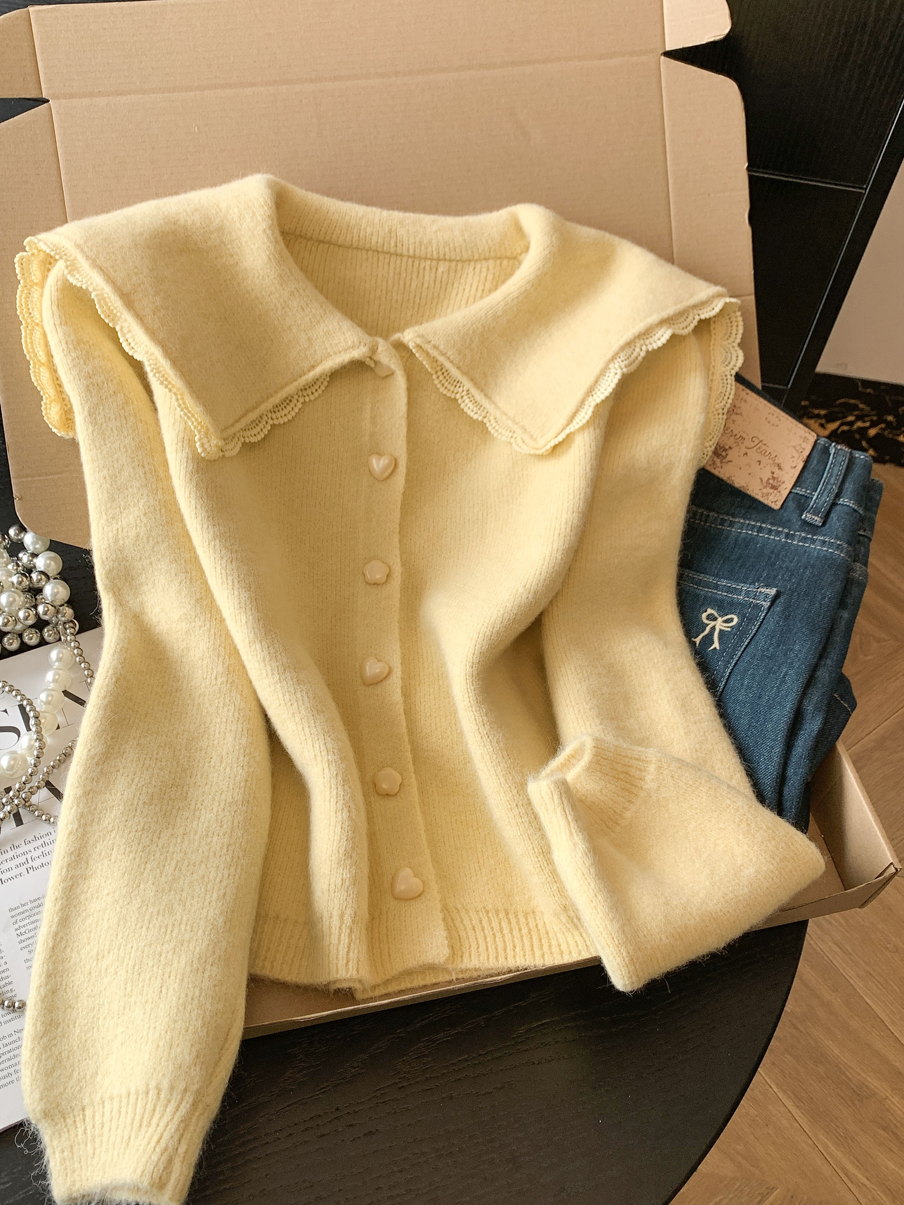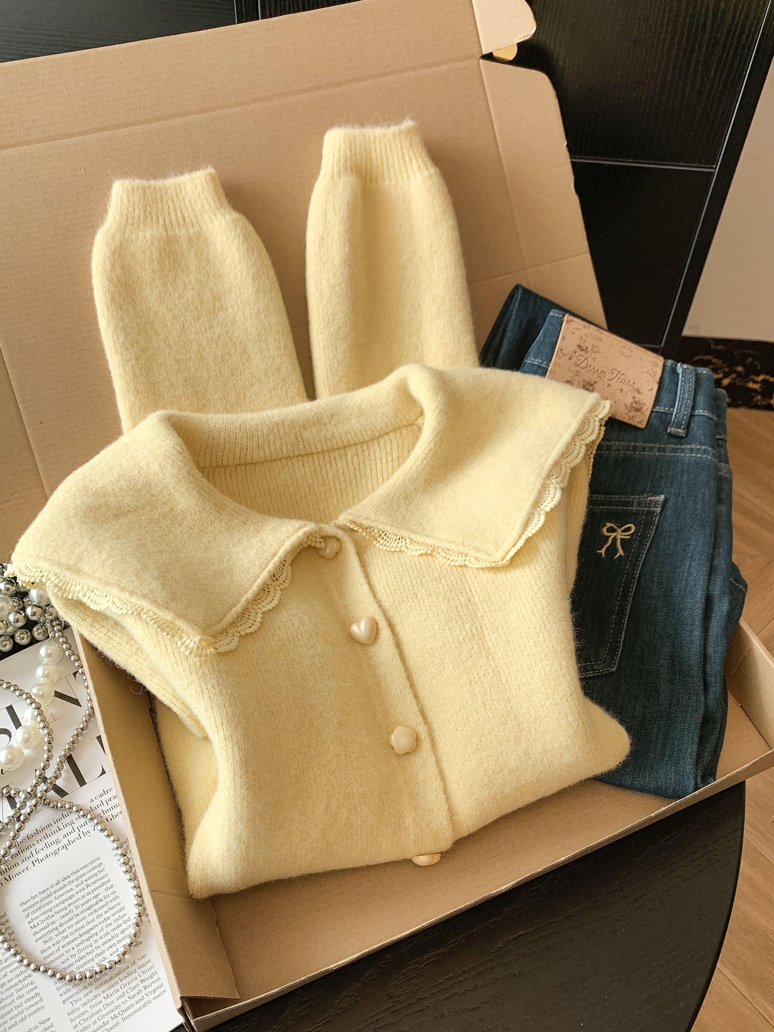 FA52792# ~秋冬新款韩版chic娃娃领毛衣外套女洋气减龄针织开衫 服裝批發女裝批發服飾貨源