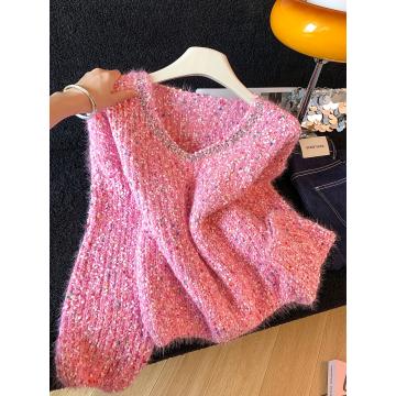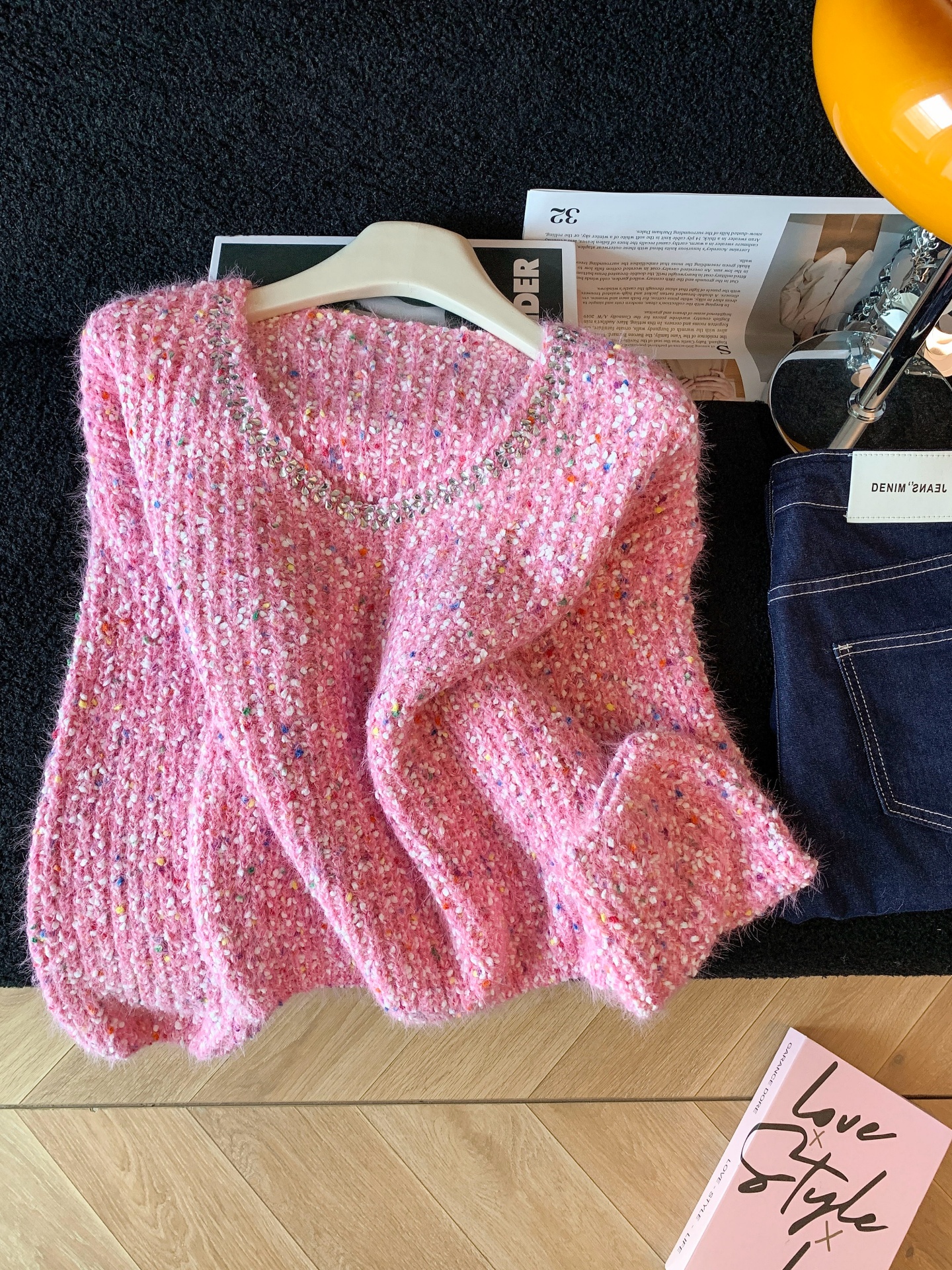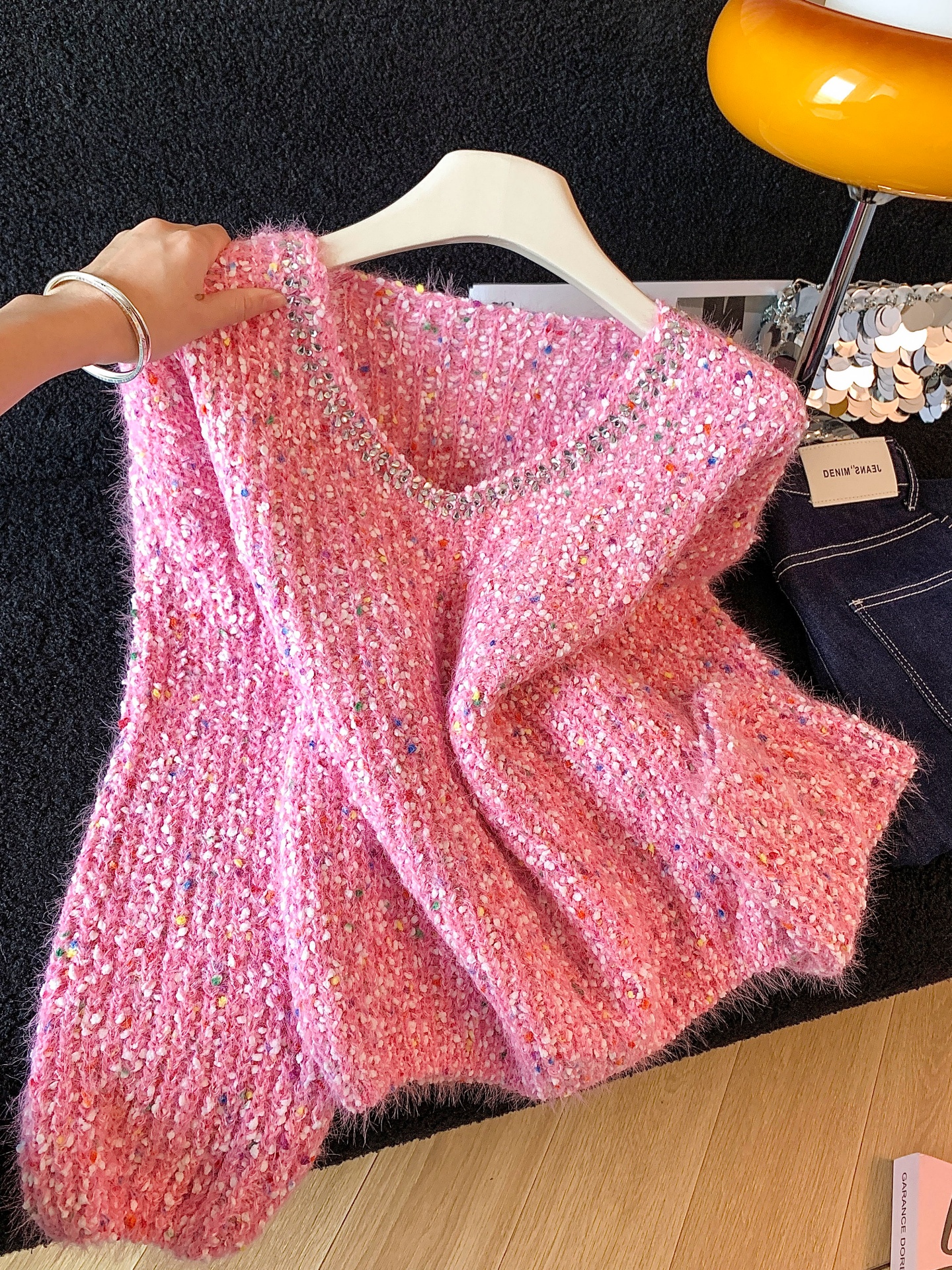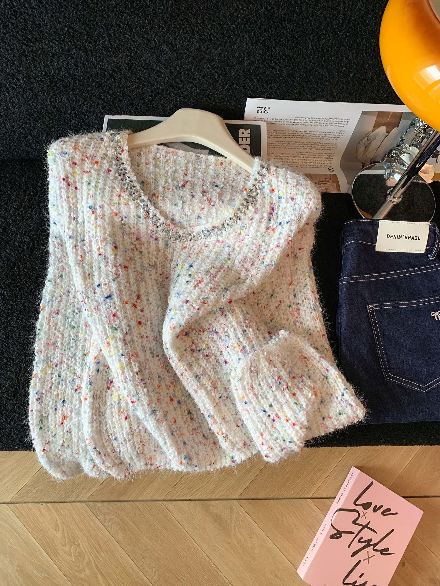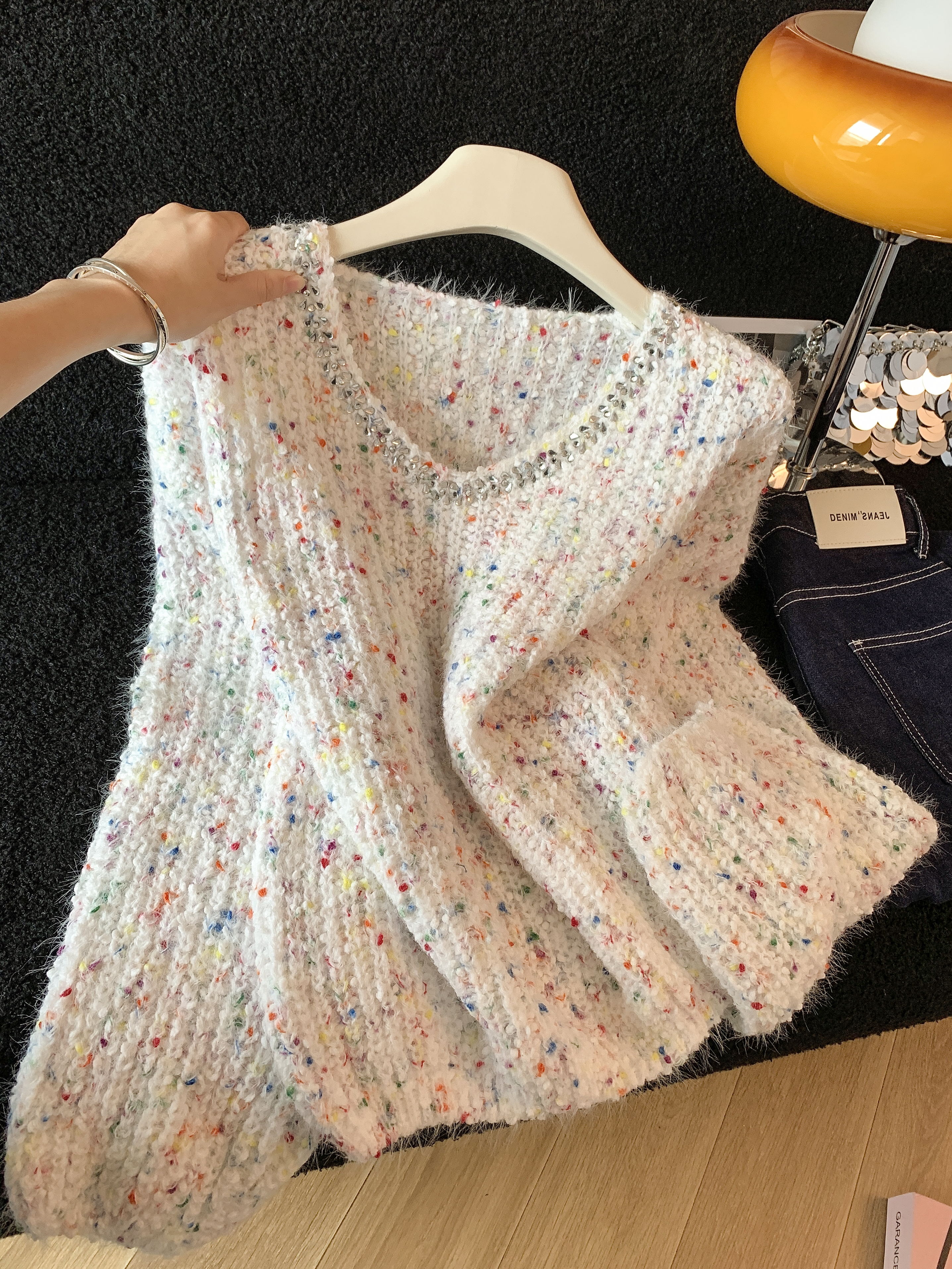 FA52794# ~韩版钉珠彩色波点拼接软糯毛衣女秋冬慵懒风时尚气质上衣 服裝批發女裝批發服飾貨源