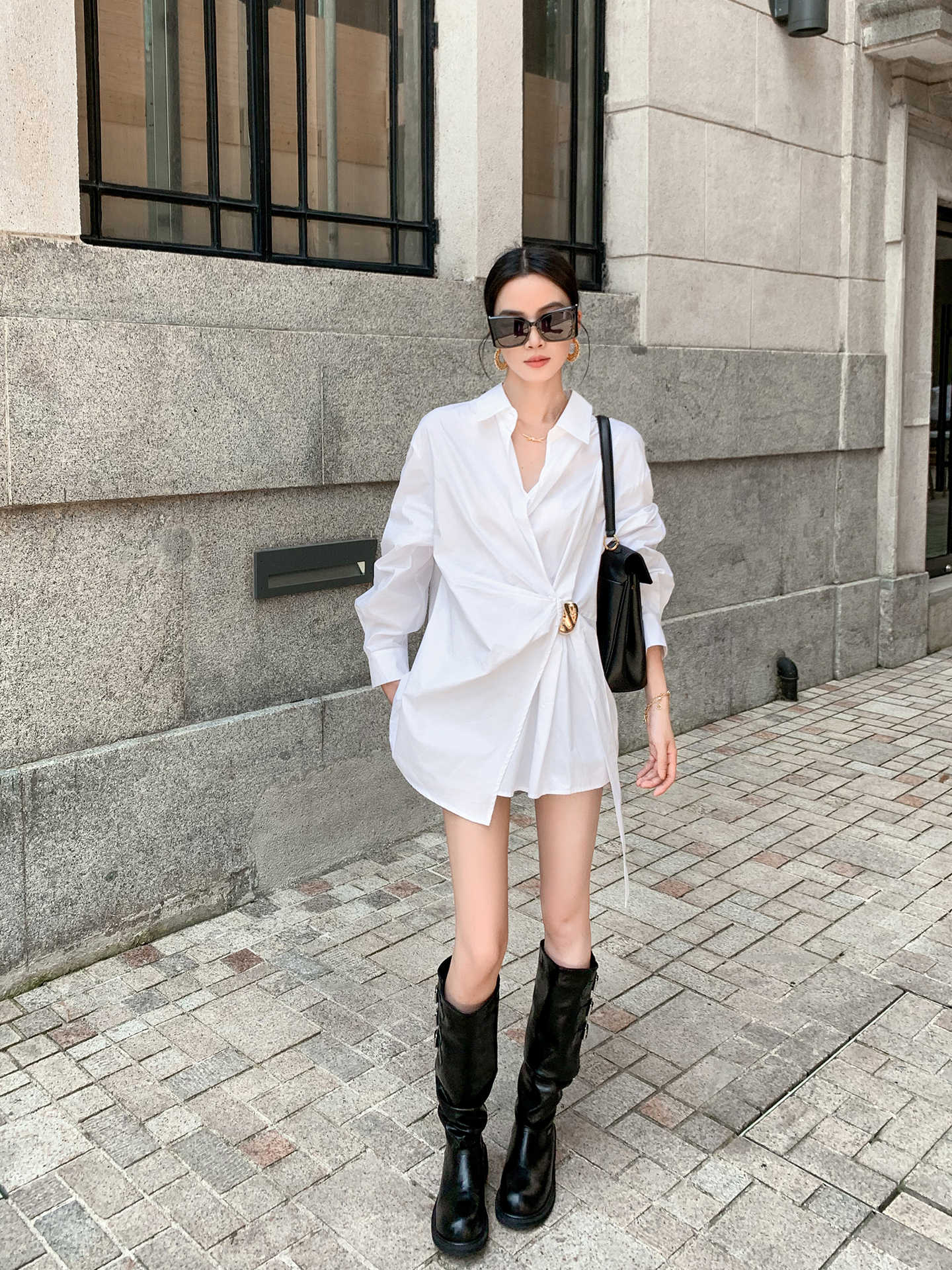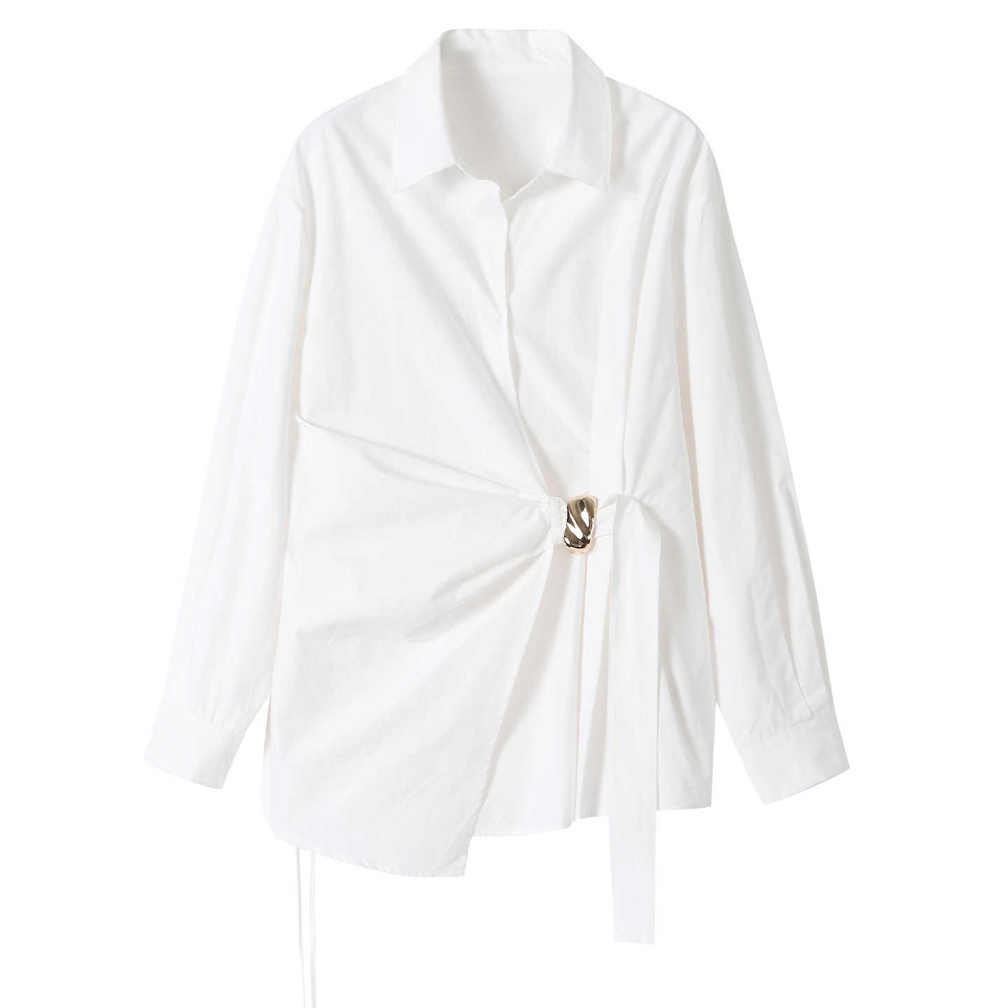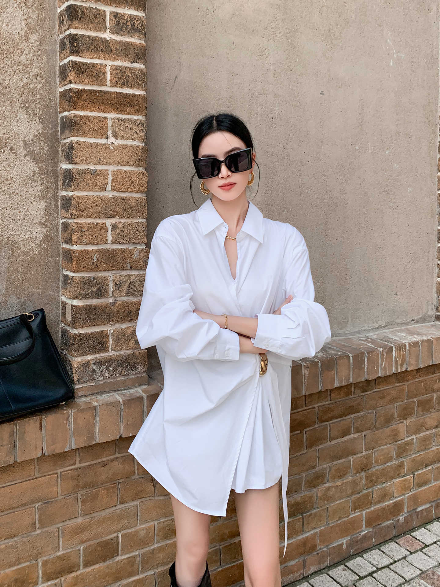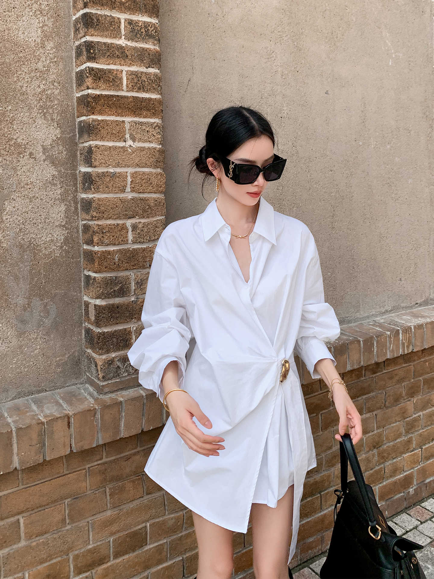 FA52812# 韩版小众设计感不规则白色衬衫女2026春秋季新款宽松休闲显瘦上衣 服裝批發女裝批發服飾貨源