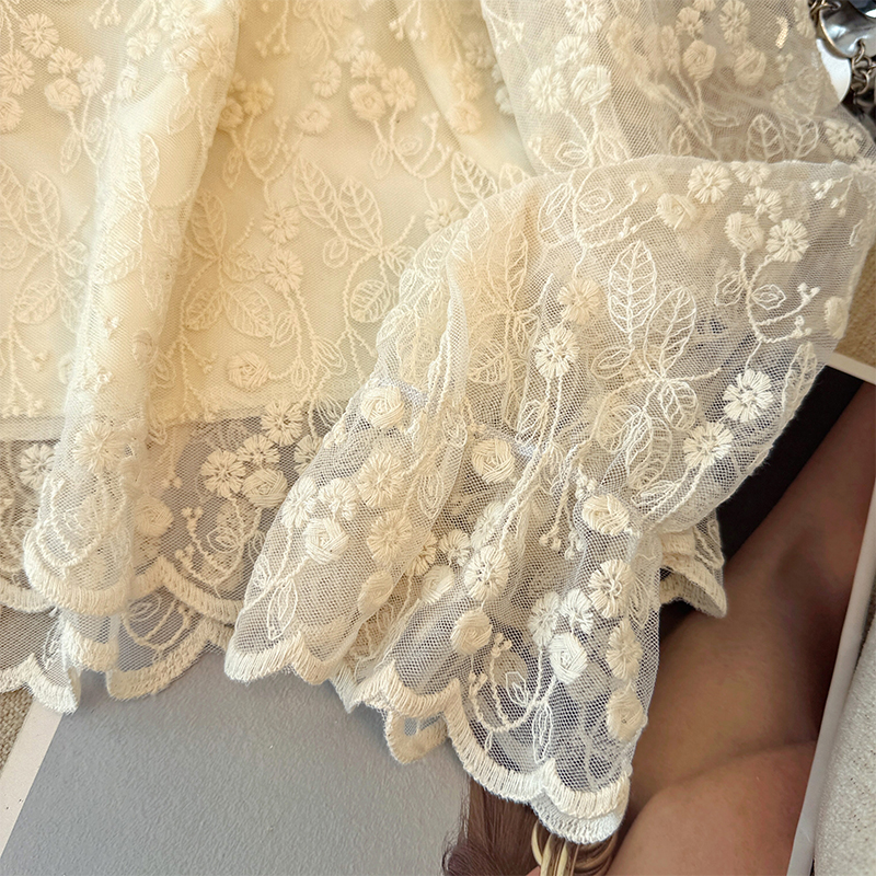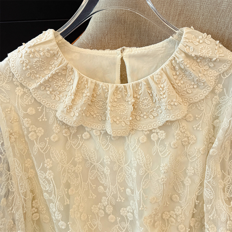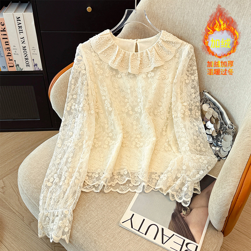 FA52998# 韩系蕾丝翻领刺绣加绒打底衬衫女新款秋日穿搭巨好看的上衣 服裝批發女裝批發服飾貨源