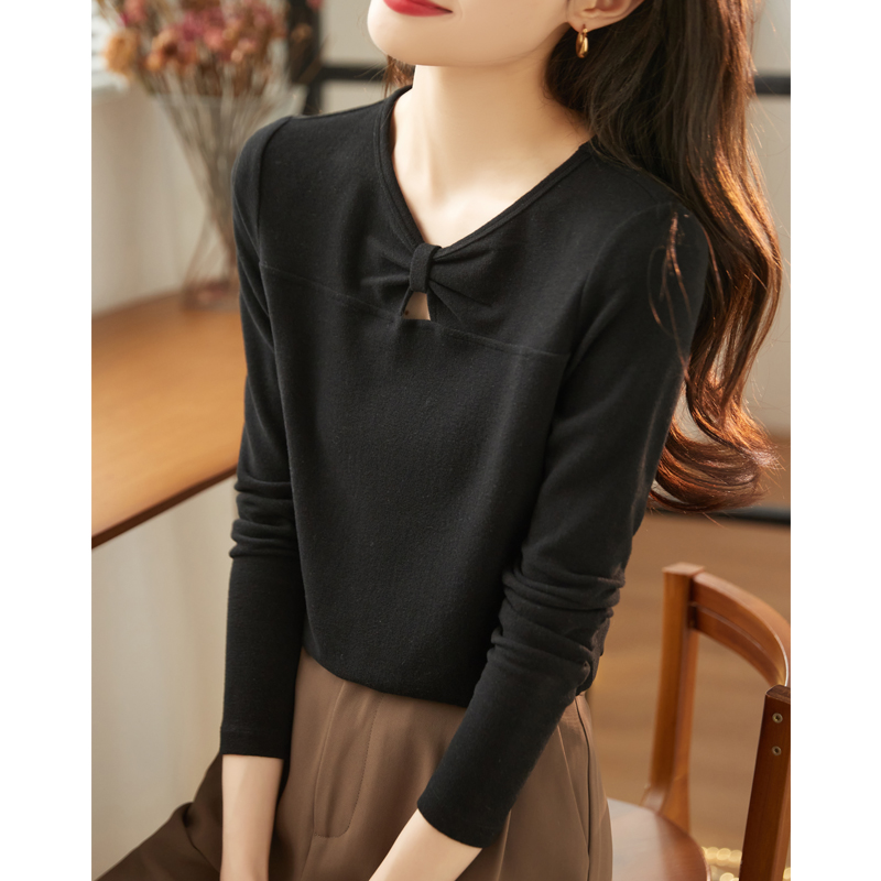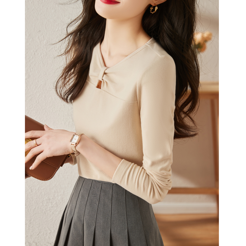 FA53047# 灯芯绒针织T恤女长袖春装新款内搭磨绒V领打底衫上衣 服裝批發女裝批發服飾貨源