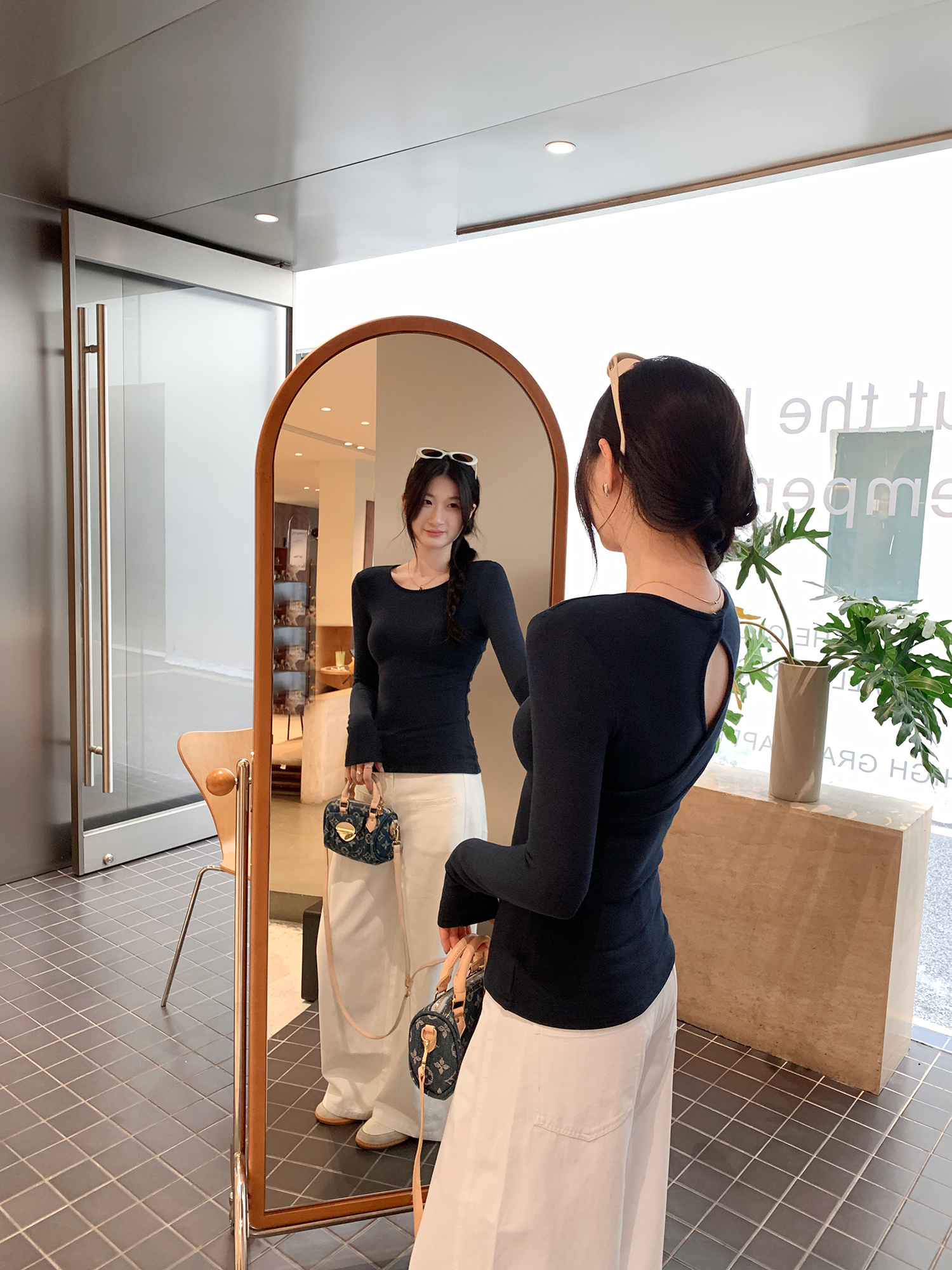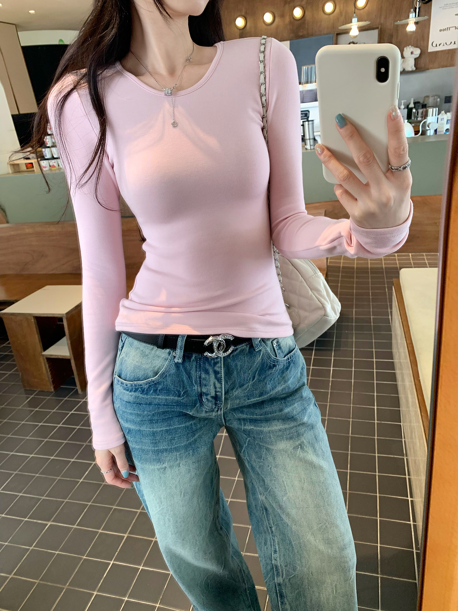 FA53074# 图独特超好看镂空磨毛打底衫女秋冬新款修身显瘦内搭上衣 服裝批發女裝批發服飾貨源