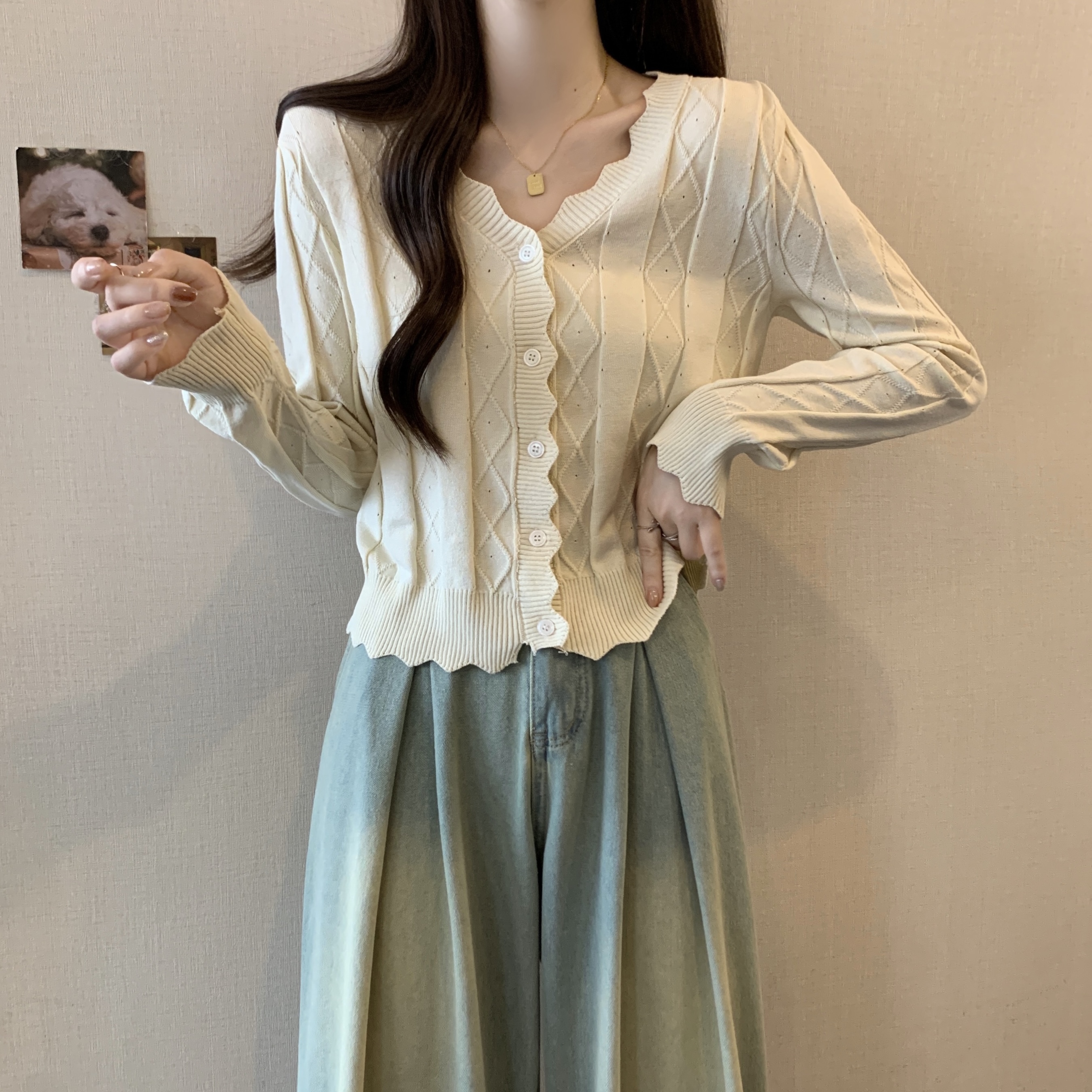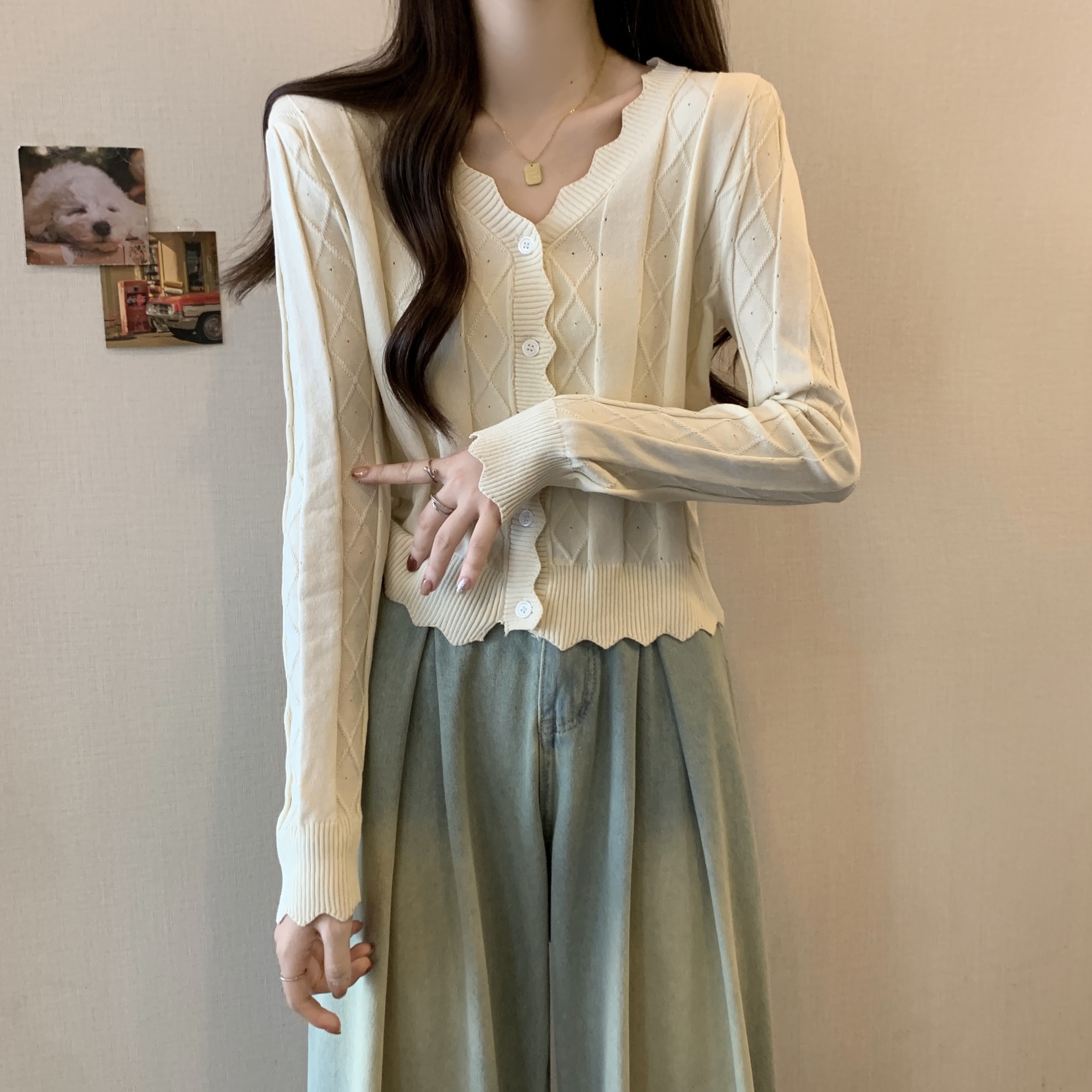 FA53127# 大码春秋新款韩系冰丝开衫女微胖正肩波浪边针织外套 服裝批發女裝批發服飾貨源
