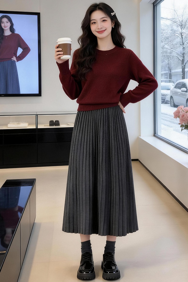 FA53157# ~加厚针织百褶半身裙新款显瘦a字伞裙韩版秋冬毛线气质裙子 服裝批發女裝批發服飾貨源