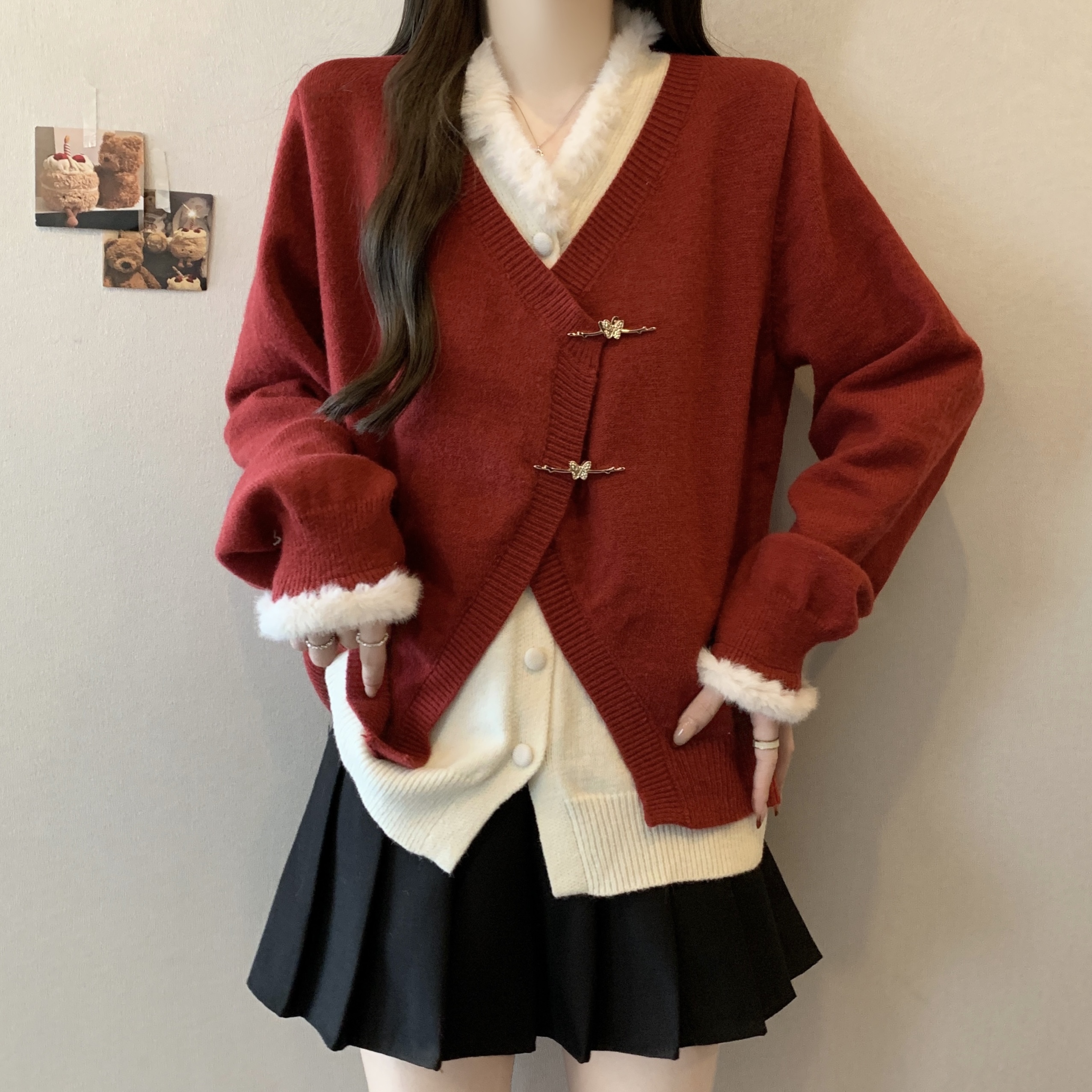 Home > 毛衣、针织衫 > FA53288# 大码设计感假两件毛衣冬季新款胖mm新年红色显瘦遮肉上衣 服裝批發女裝批發服飾貨源