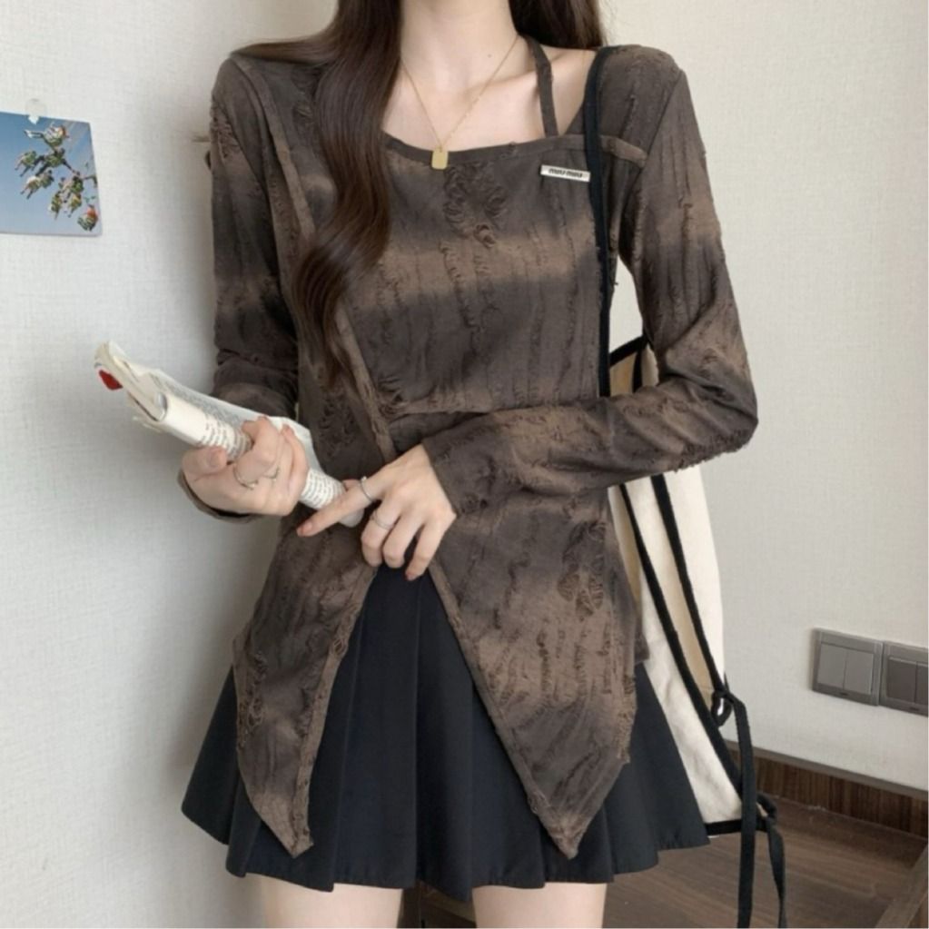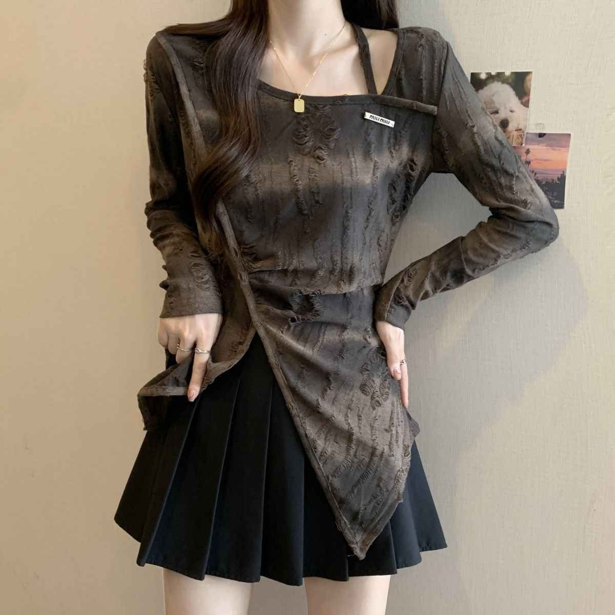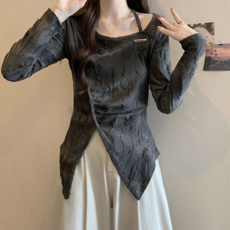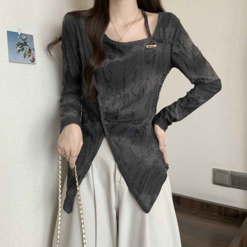FA53296# 韩版复古不规则方领特色修身套头款打底长袖百搭上衣女装 服裝批發女裝批發服飾貨源