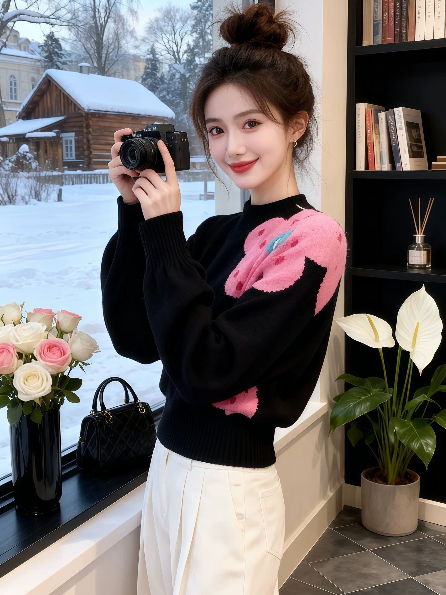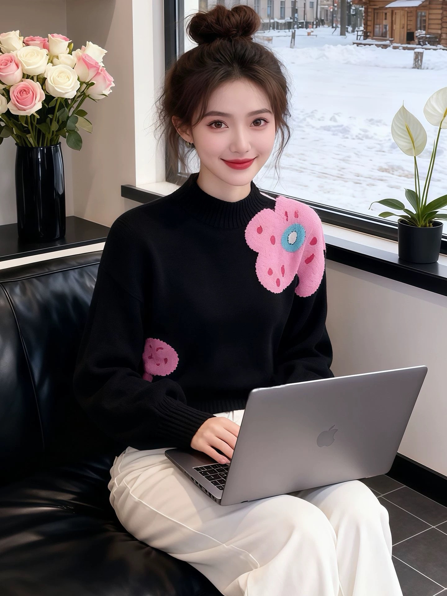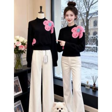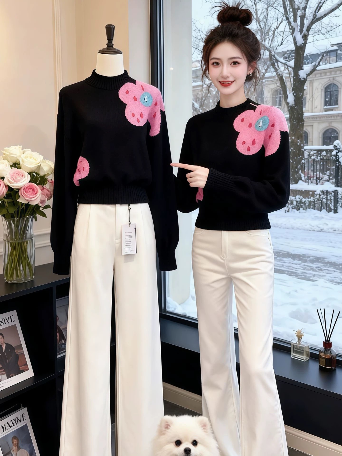 FA54119# 黑色提花内搭打底针织衫毛衣女秋冬季慵懒松弛感绝美漂亮上衣 服裝批發女裝批發服飾貨源