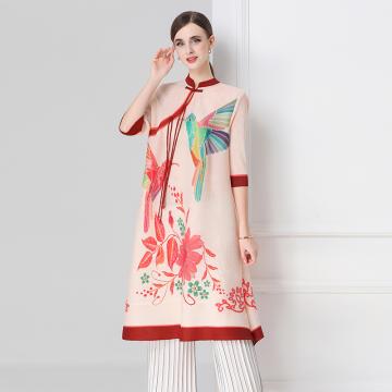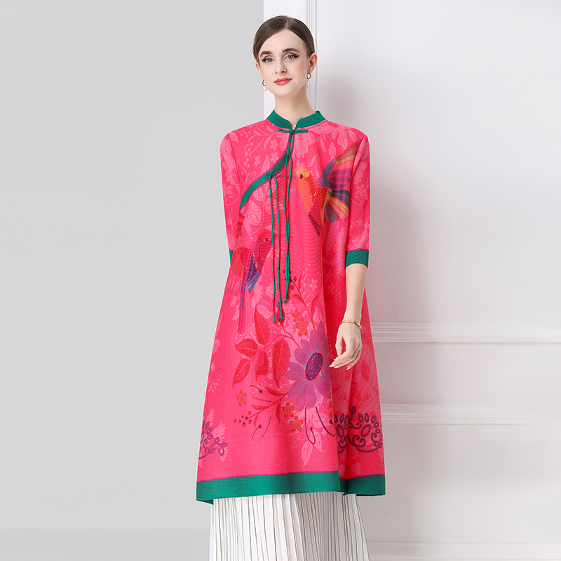 FA54331# 旗袍改良印花连衣裙春秋新款气质洋气裙子宽松高端盘扣褶皱裙 服裝批發女裝批發服飾貨源