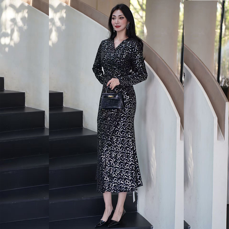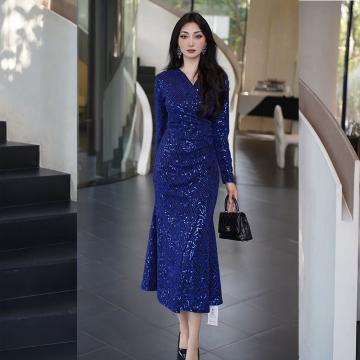FA54495# 连衣裙秋新款女重要场合气质纯色亮片鱼尾礼服高端轻奢高级感 服裝批發女裝批發服飾貨源