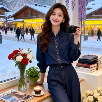 FA56649# 韩版春秋新款设计感宽松时尚百搭多线装饰宽袖口内搭叠穿牛仔上衣 服裝批發女裝批發服飾貨源