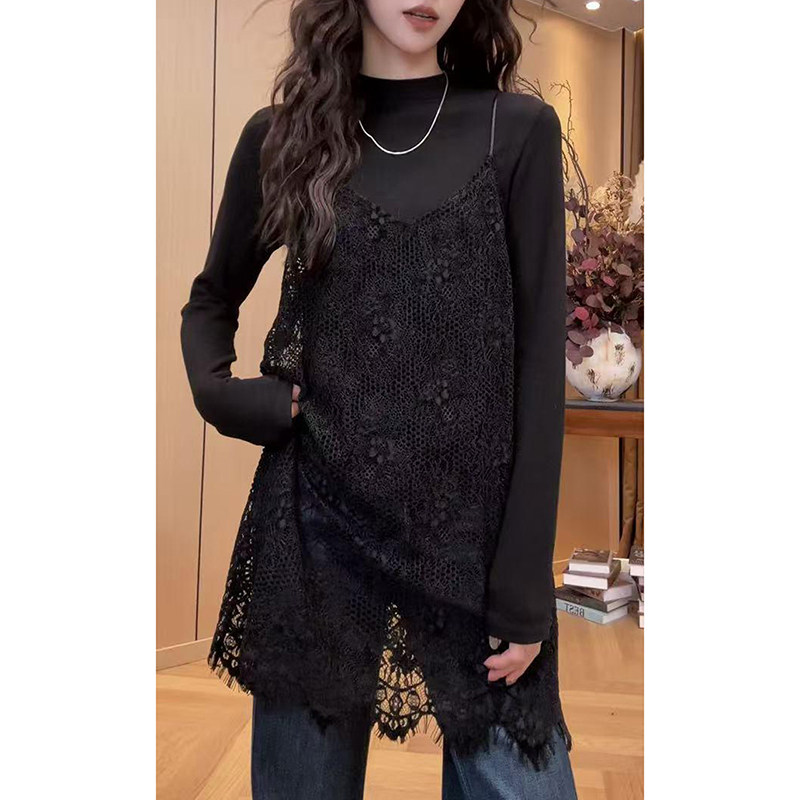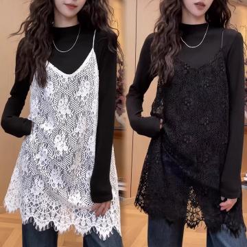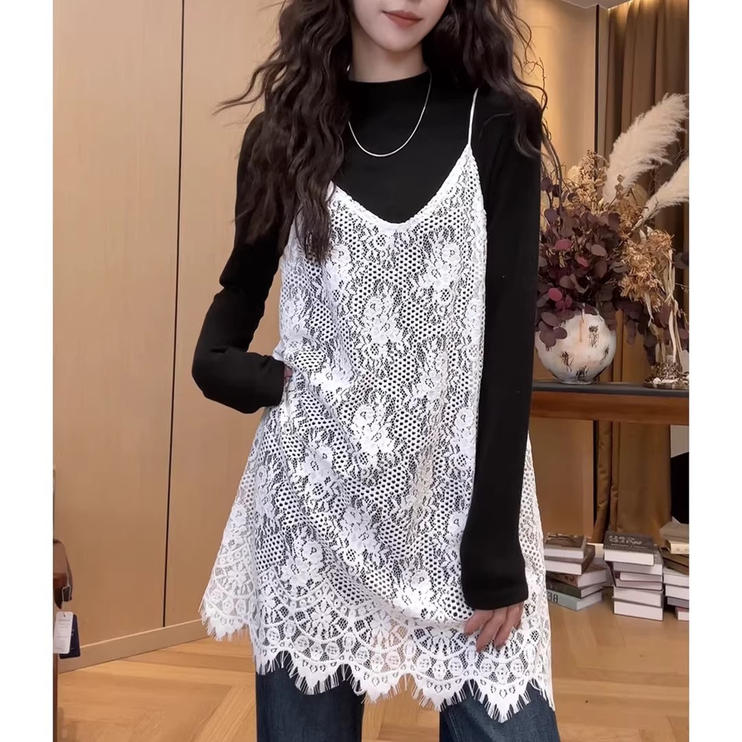 FA56659# 时尚洋气休闲百搭上衣女早春季新款气质设计感吊带蕾丝裙 服裝批發女裝批發服飾貨源