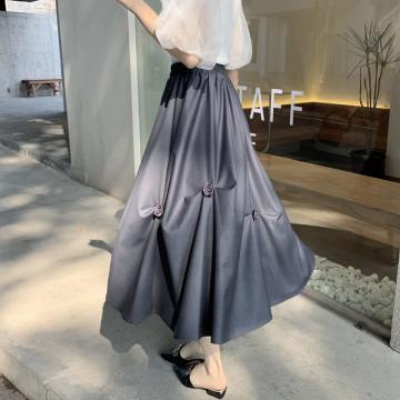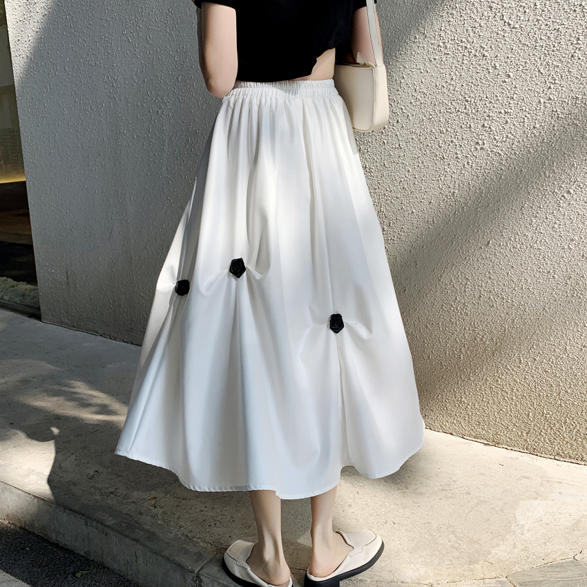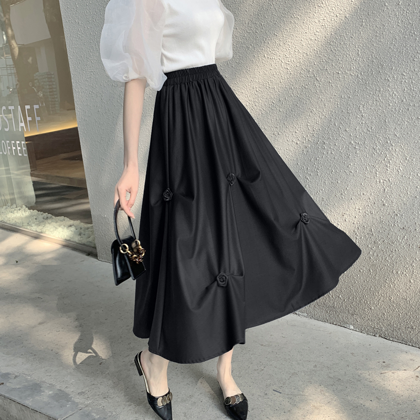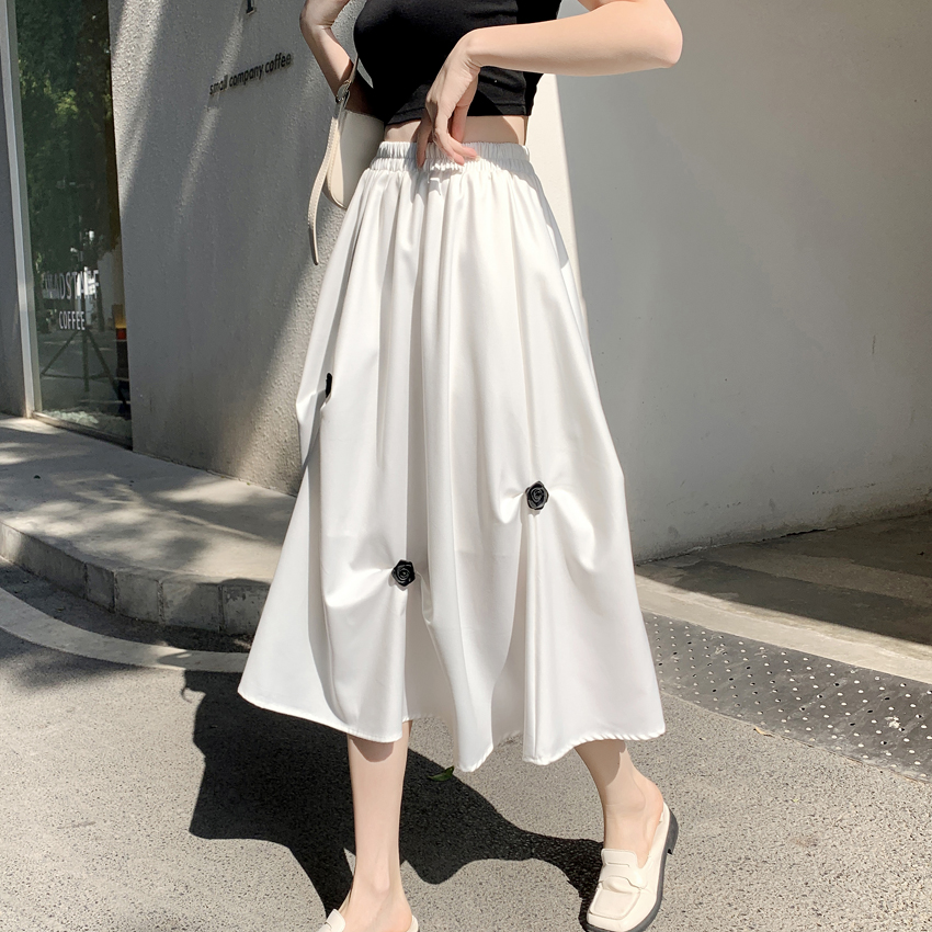 FA56679# 小众百搭松紧腰半身裙春夏设计感不规则褶皱花朵a字中长裙 服裝批發女裝批發服飾貨源