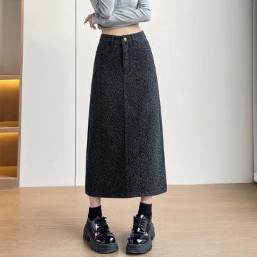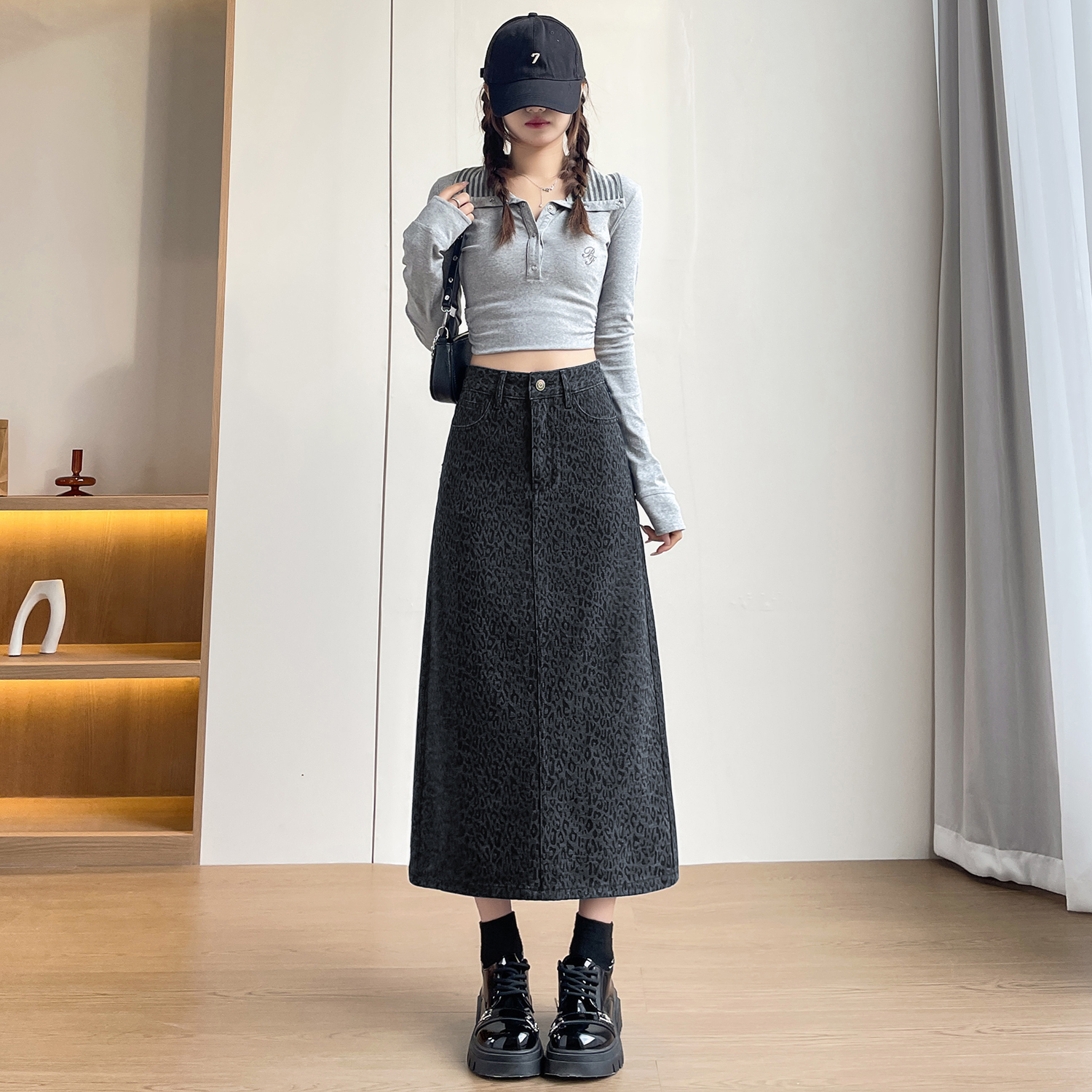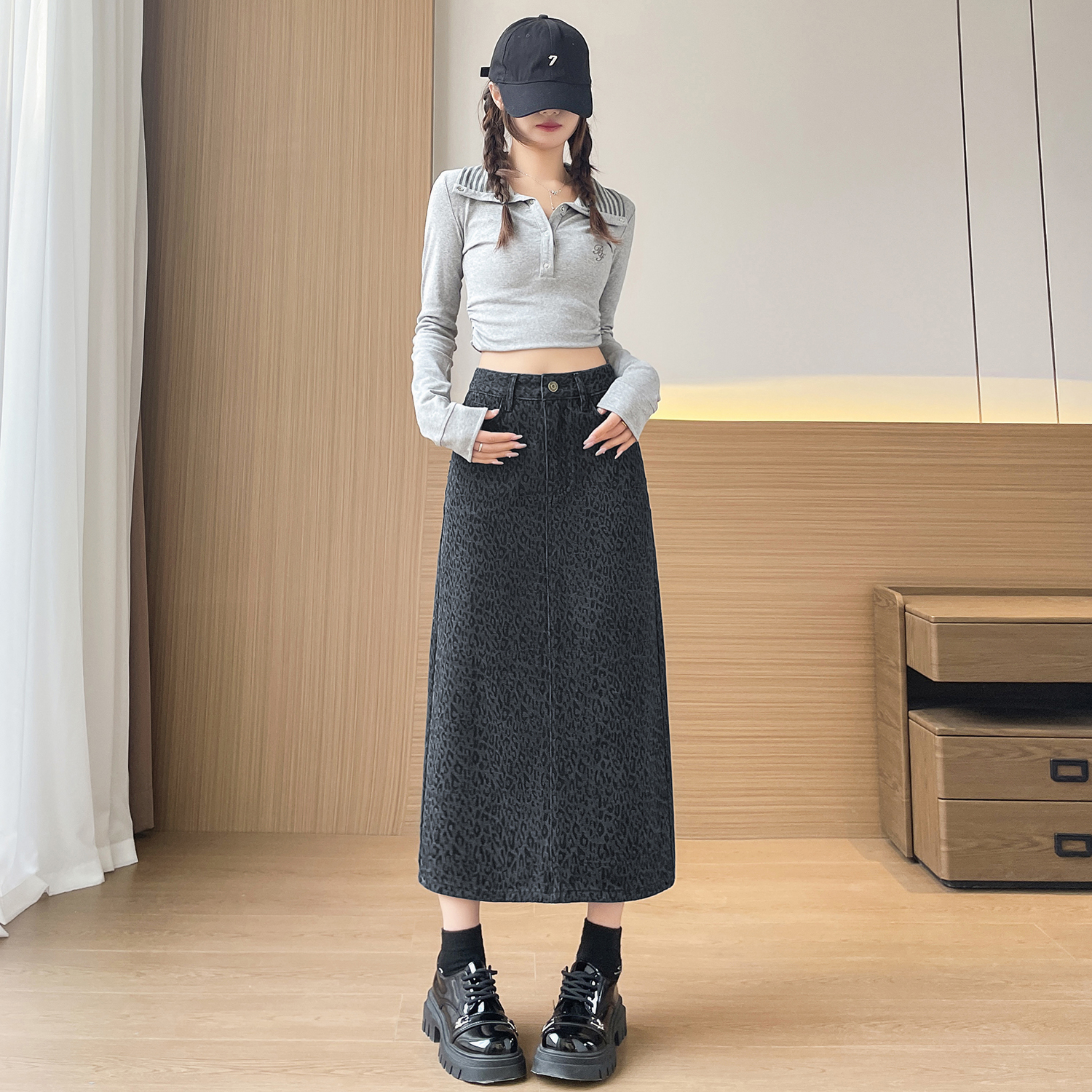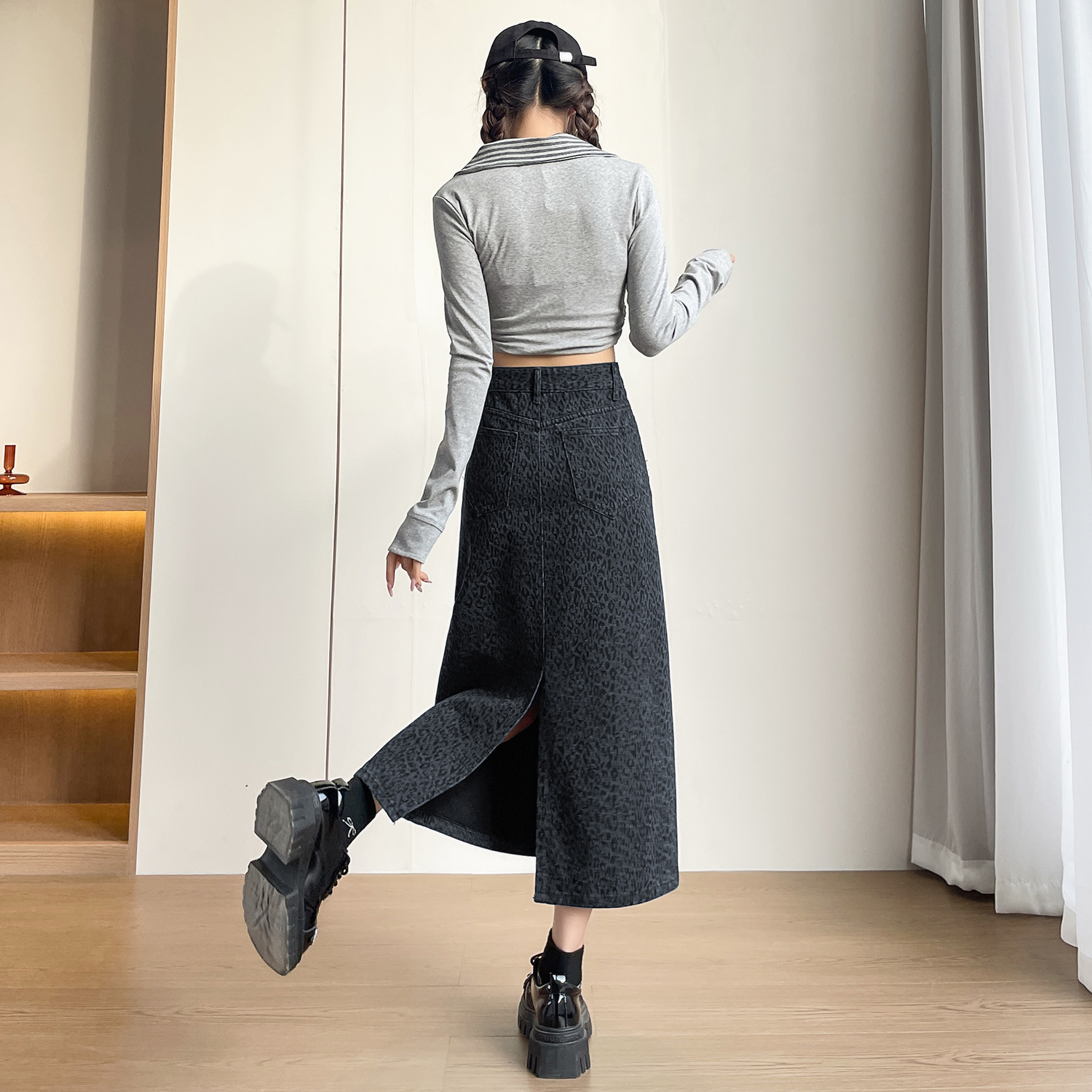FA56686# 春秋百搭豹纹牛仔一步裙半身裙女145CM娇小个子 服裝批發女裝批發服飾貨源