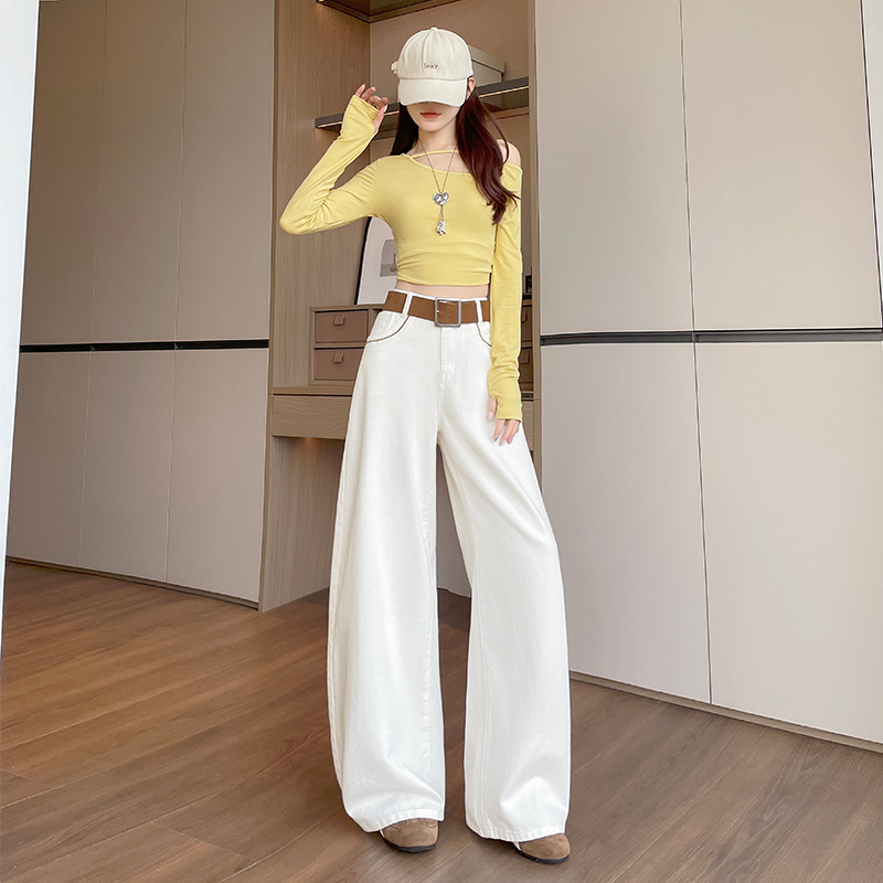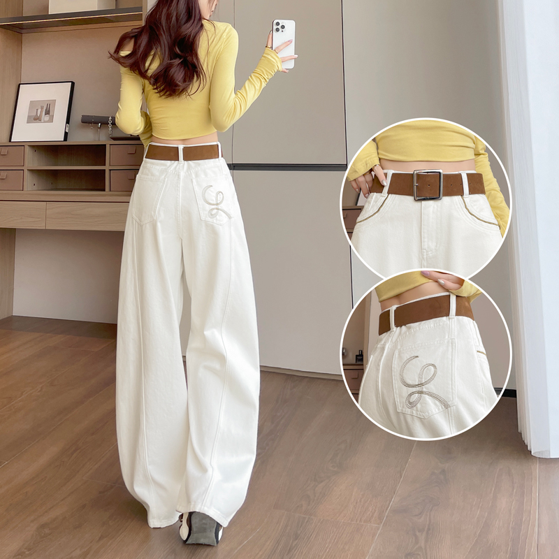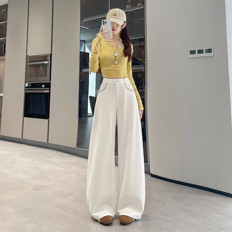FA56707# 浅色阔腿牛仔裤女春季新款宽松时尚设计感超火直筒拖地裤 服裝批發女裝批發服飾貨源