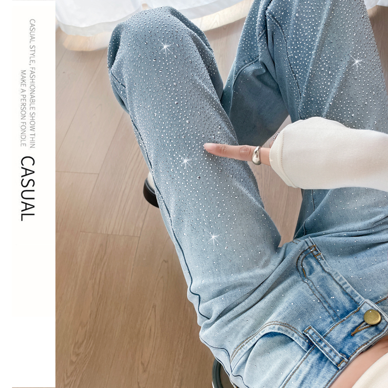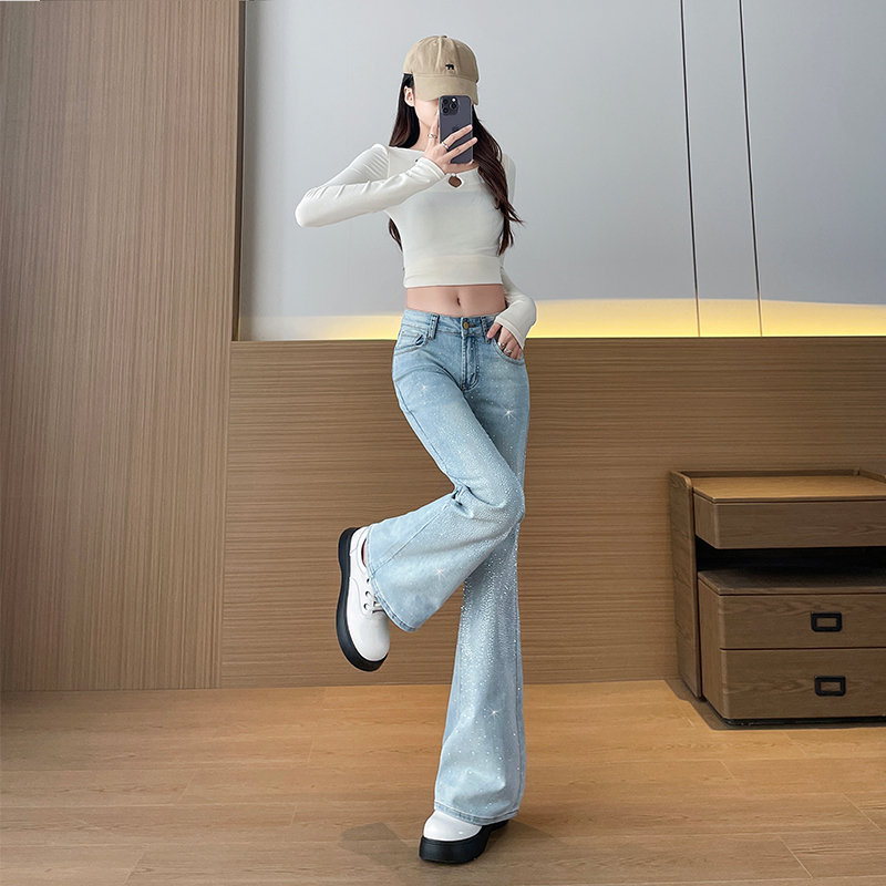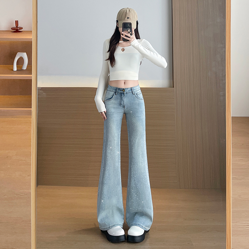 FA56709# 闪钻微喇叭牛仔裤女2026春新款高腰显瘦百搭高级感拖地微喇裤 服裝批發女裝批發服飾貨源