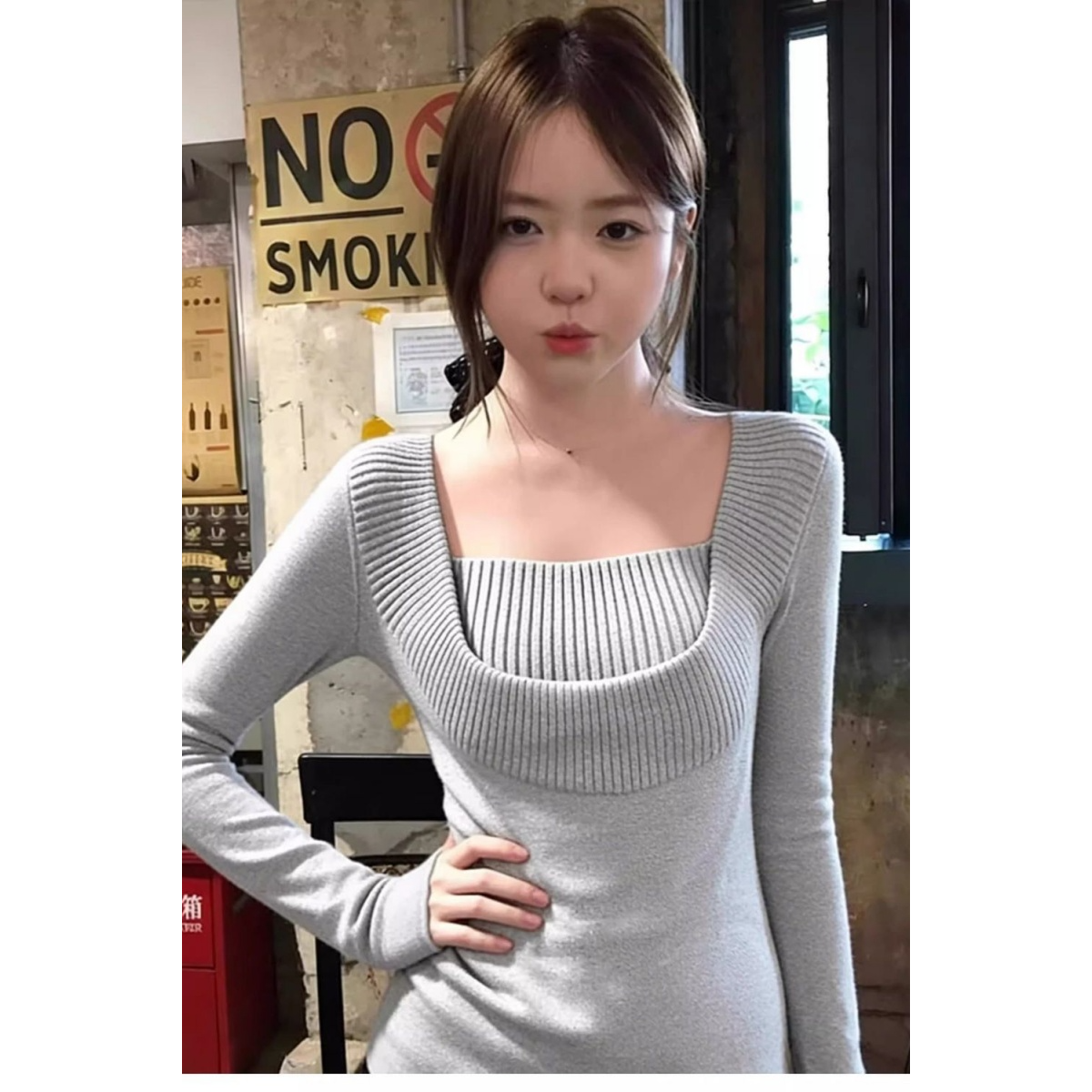 FA56715# 高级感假两件方领毛衣新款春季短款修身针织上衣 服裝批發女裝批發服飾貨源