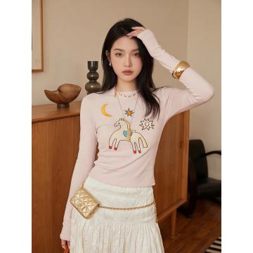 FA56719# 韩系刺绣长袖打底衫T恤女早春季新款修身显瘦高级感上衣 服裝批發女裝批發服飾貨源