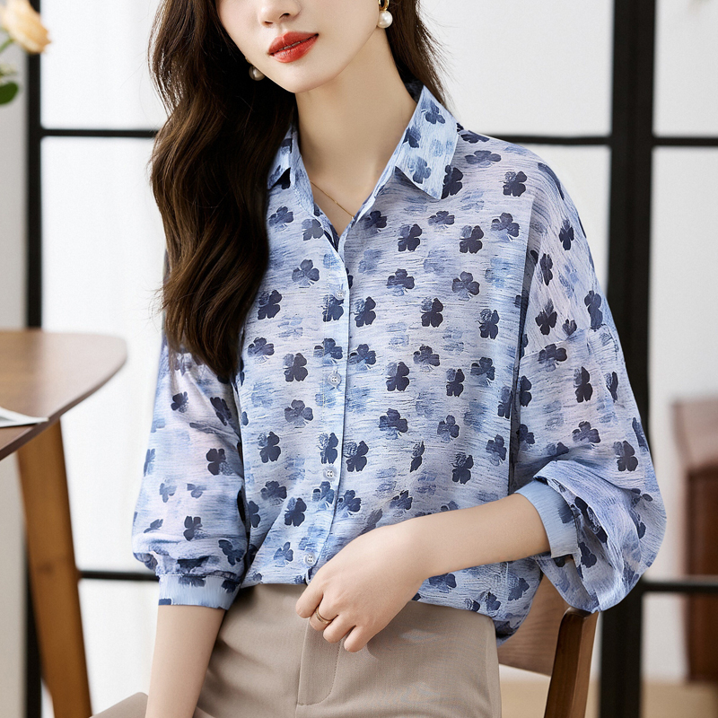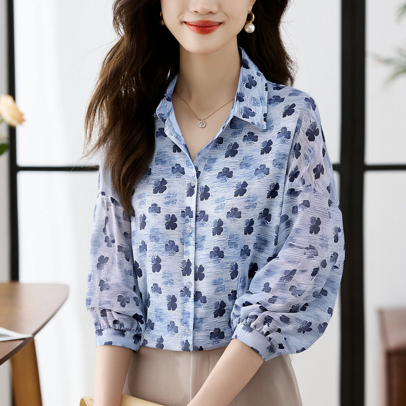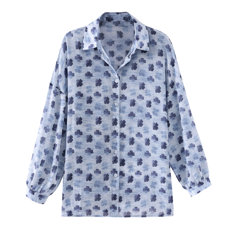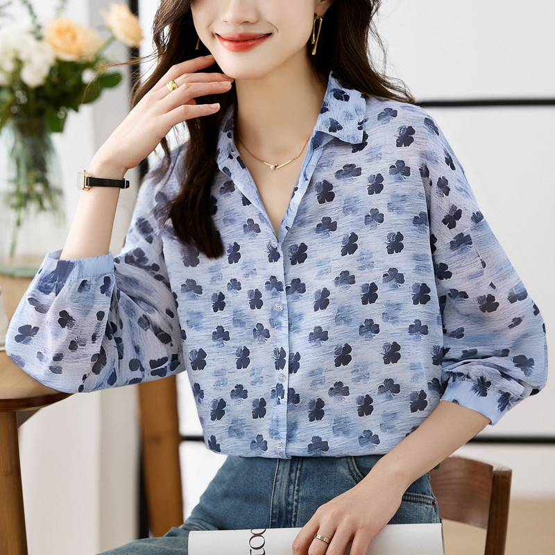 FA56768# 大码宽松休闲花色秋季新款女装翻领雪纺上衣开衫衬衫打底衬衣 服裝批發女裝批發服飾貨源