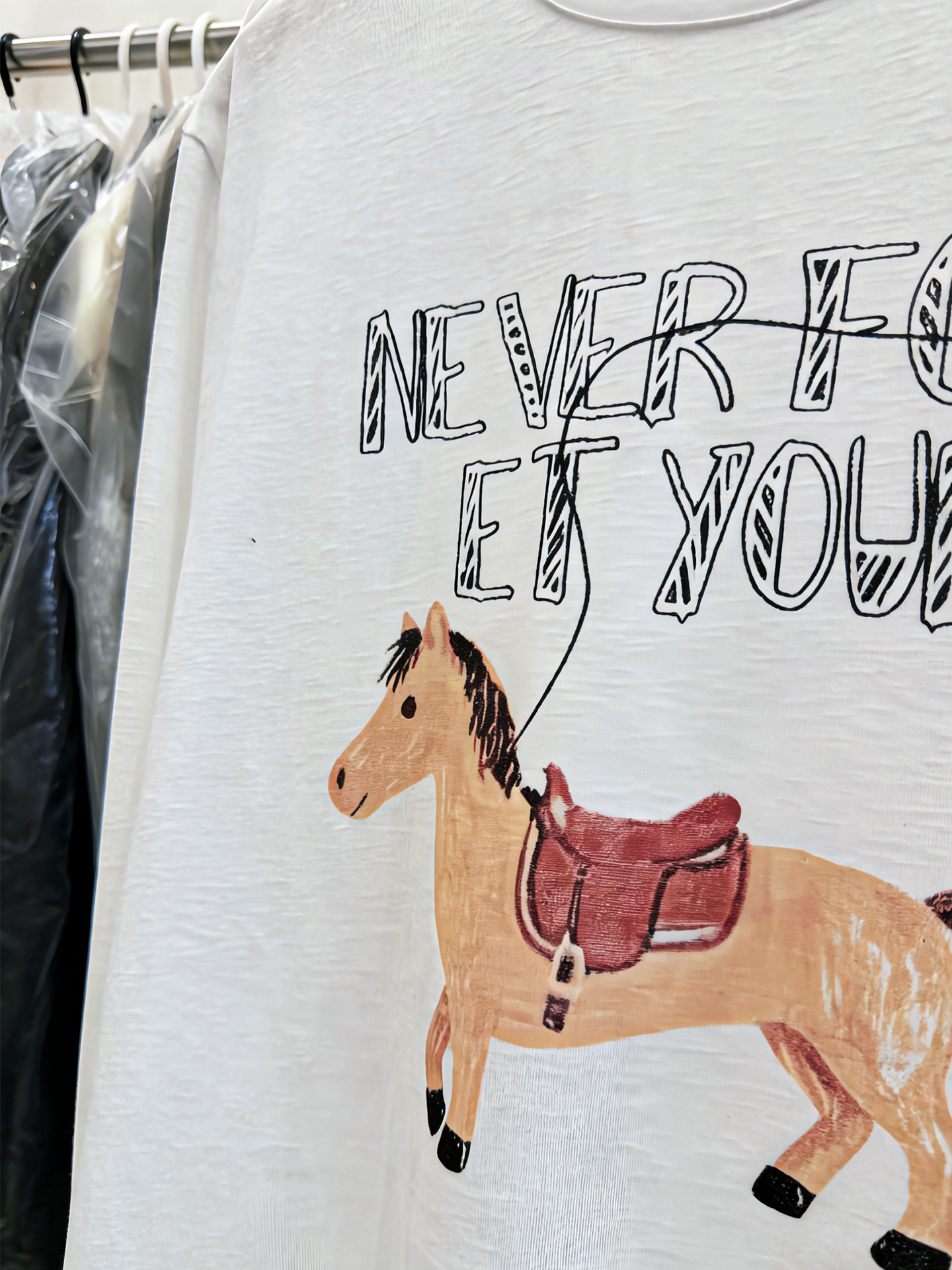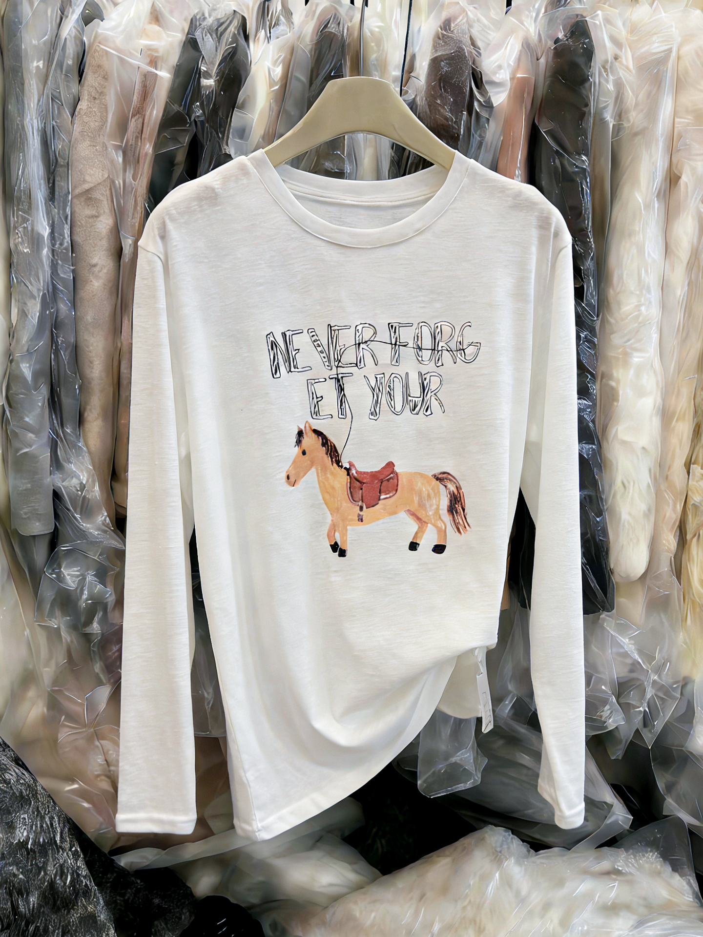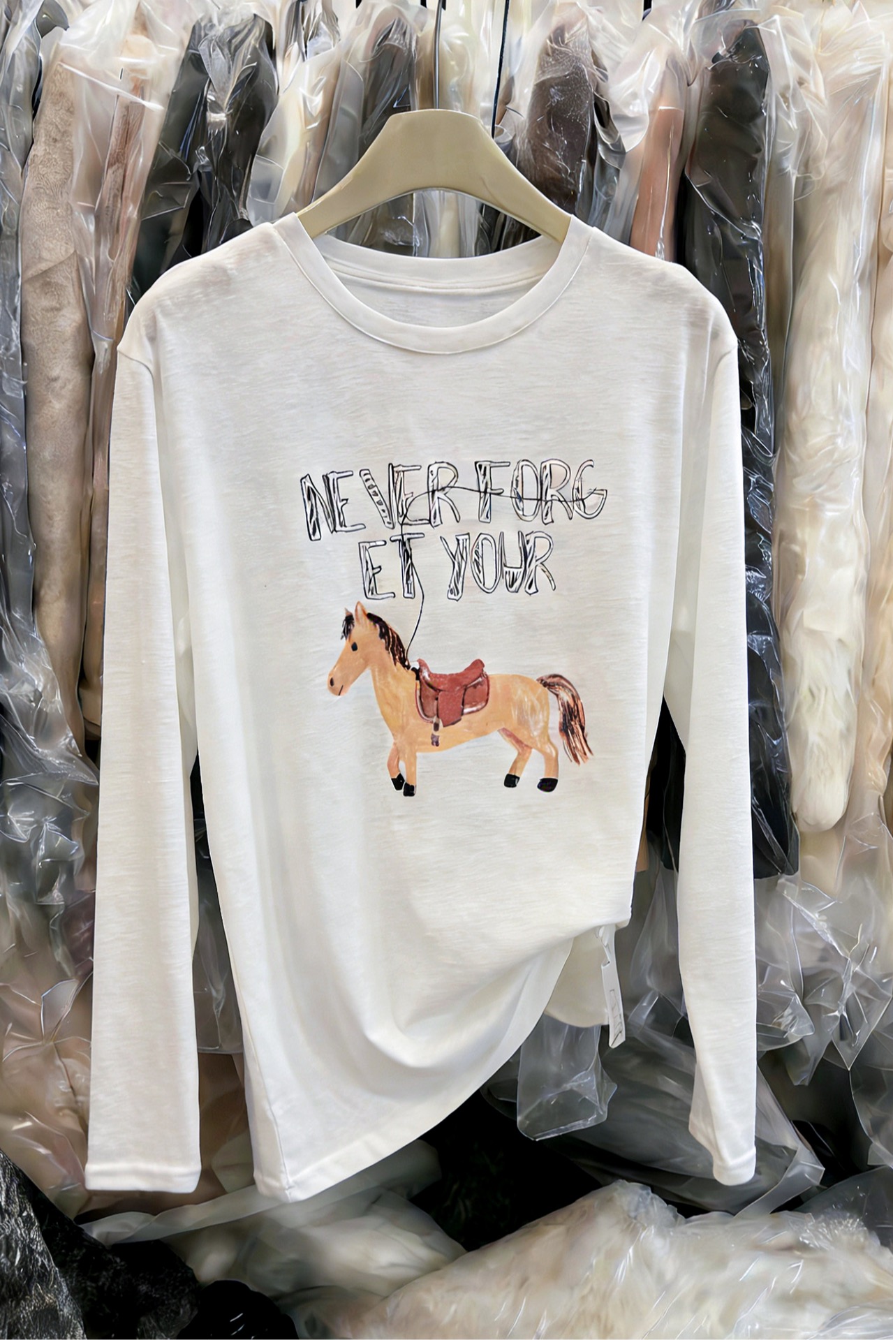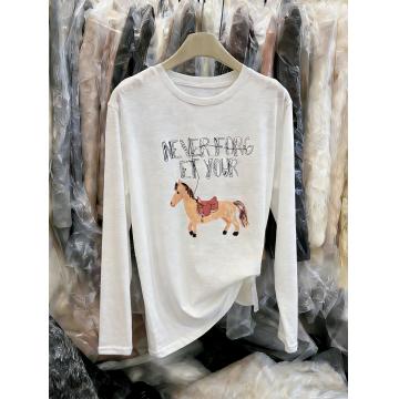 FA56772# 韩版小马印花字母长袖T恤女春季新款宽松洋气百搭打底衫上衣 服裝批發女裝批發服飾貨源