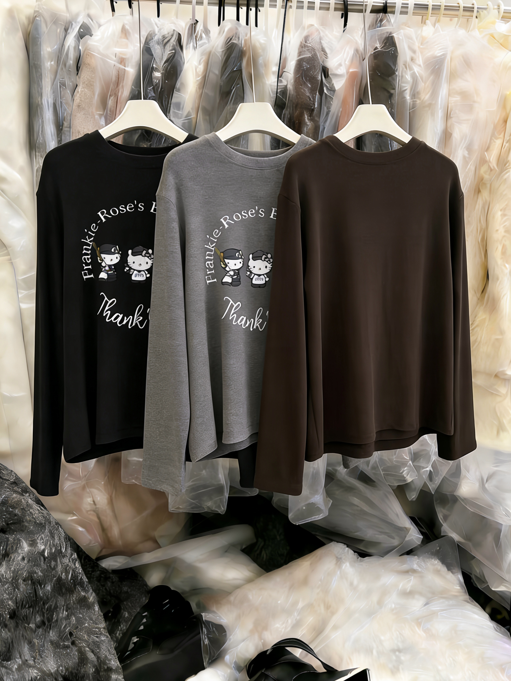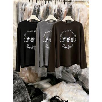 FA56773# 磨毛加绒韩系慵懒减龄印花长袖t恤女秋冬内搭打底衫高级感上衣 服裝批發女裝批發服飾貨源