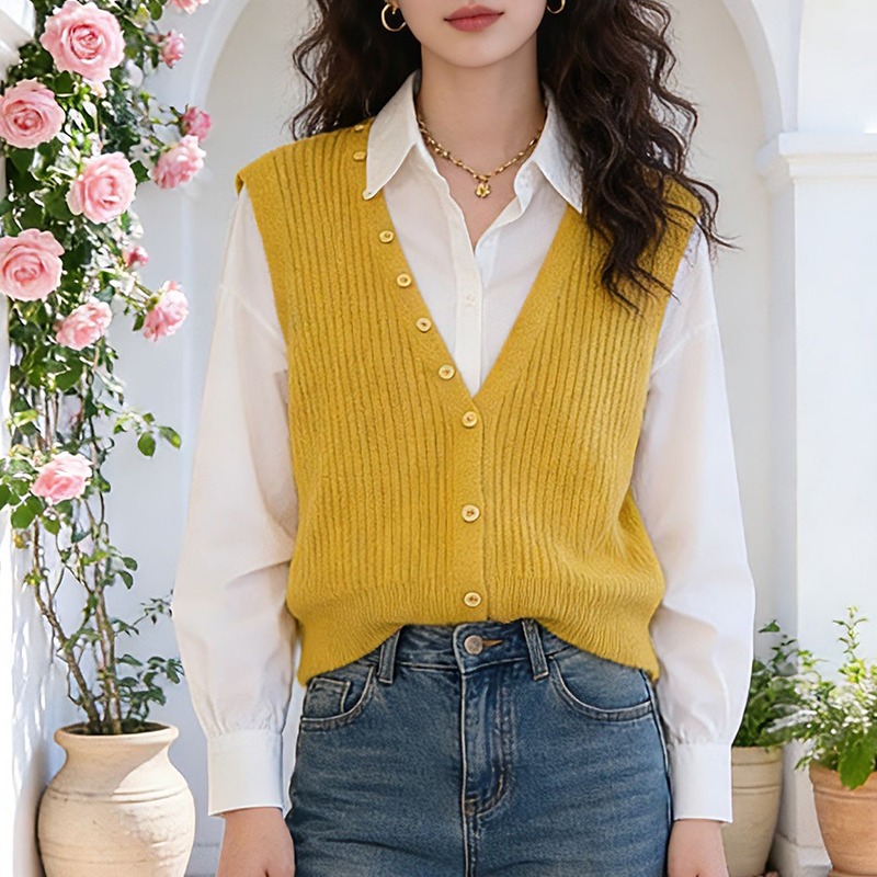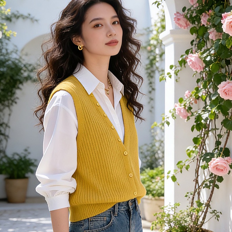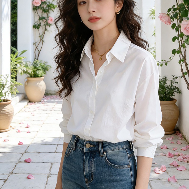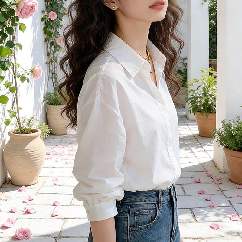 FA56778# 白色衬衫女叠穿打底百搭白衬衣春秋气质长袖上衣V领针织开衫马甲 服裝批發女裝批發服飾貨源