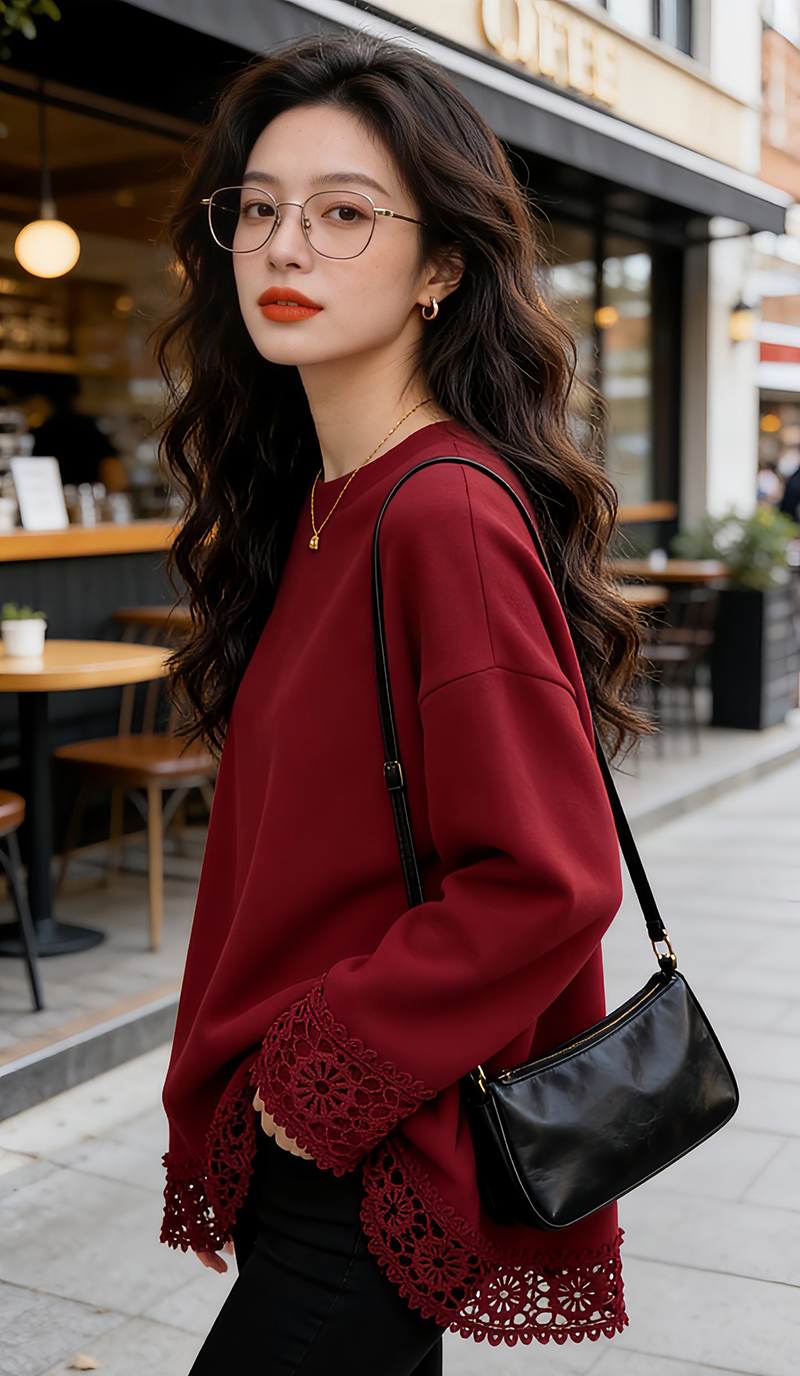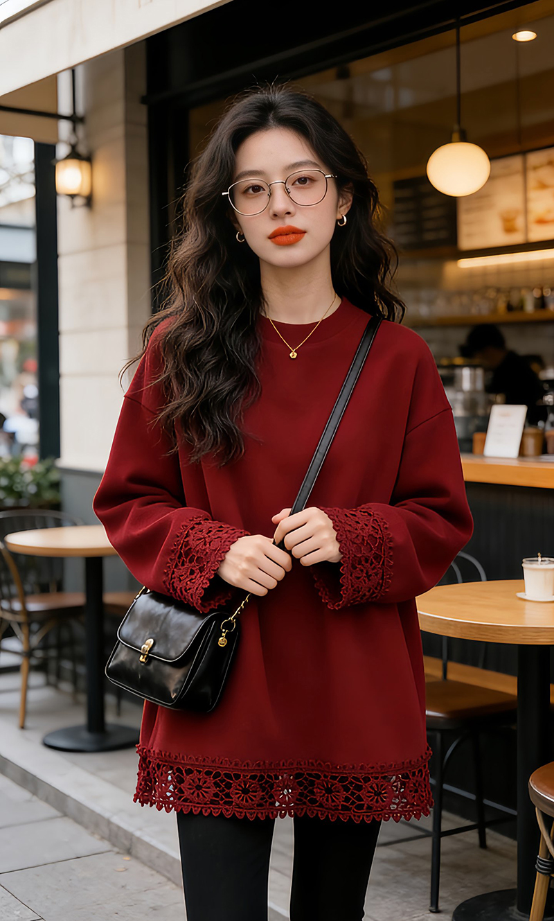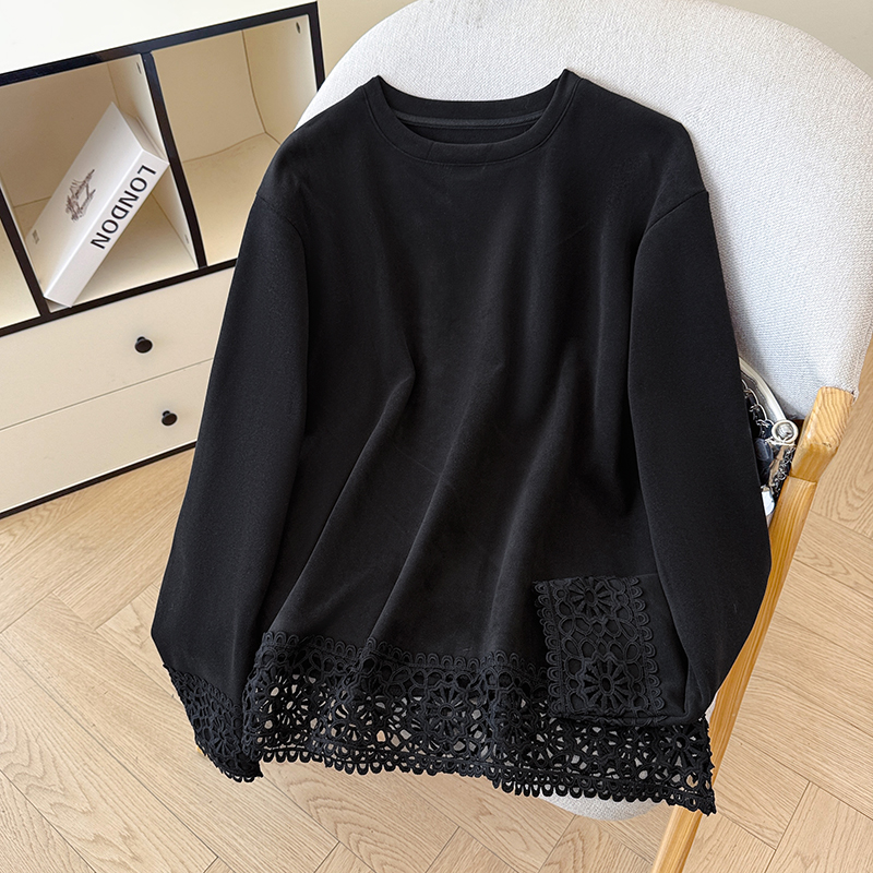 FA56784# 蕾丝拼接德绒加厚保暖卫衣女秋冬款新款时尚洋气宽松上衣 服裝批發女裝批發服飾貨源