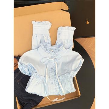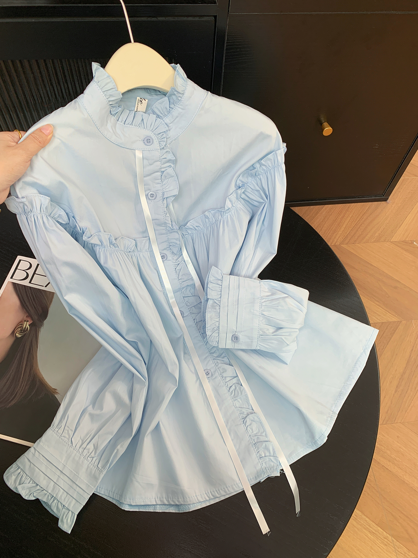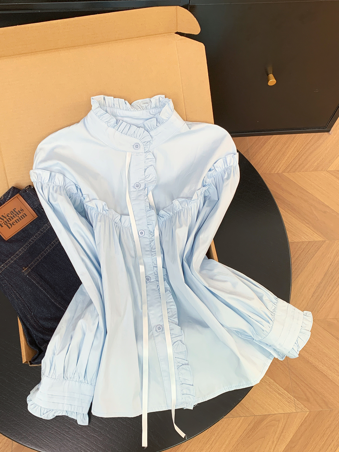 FA56822# 法式荷叶边衬衫女新款飘带上衣 服裝批發女裝批發服飾貨源