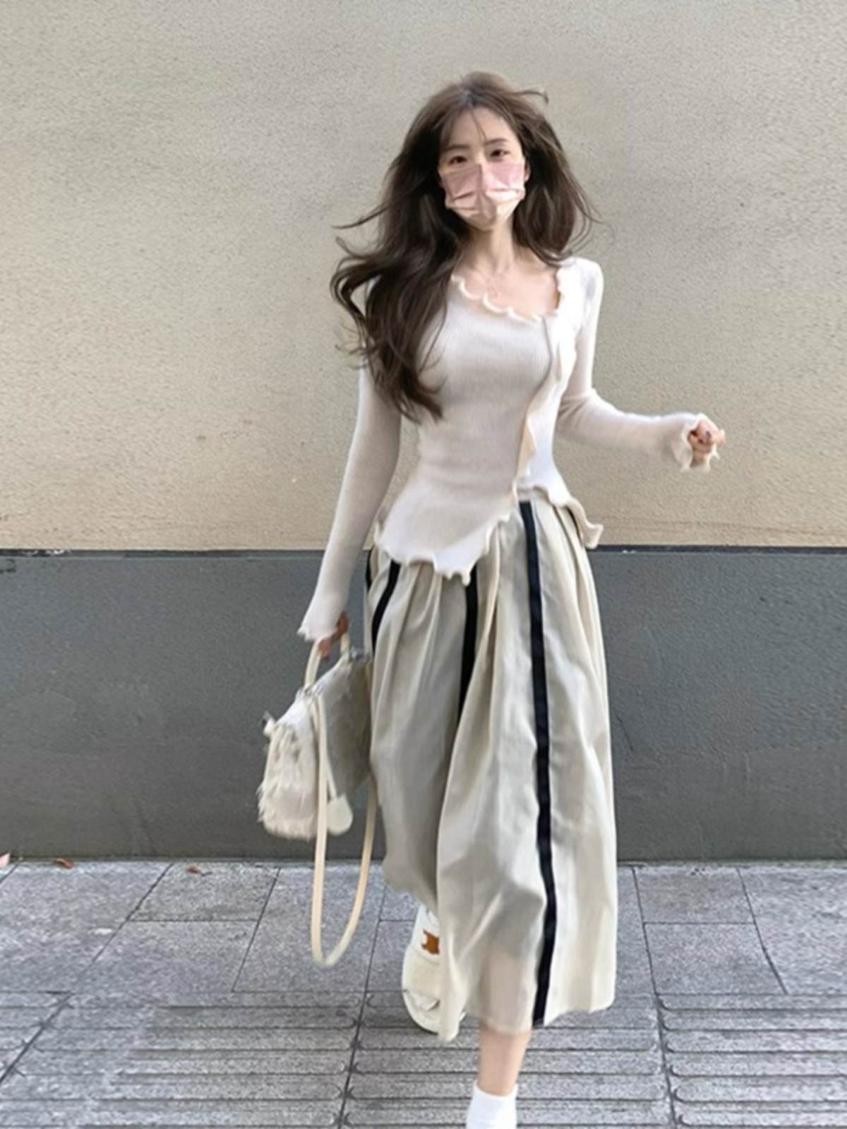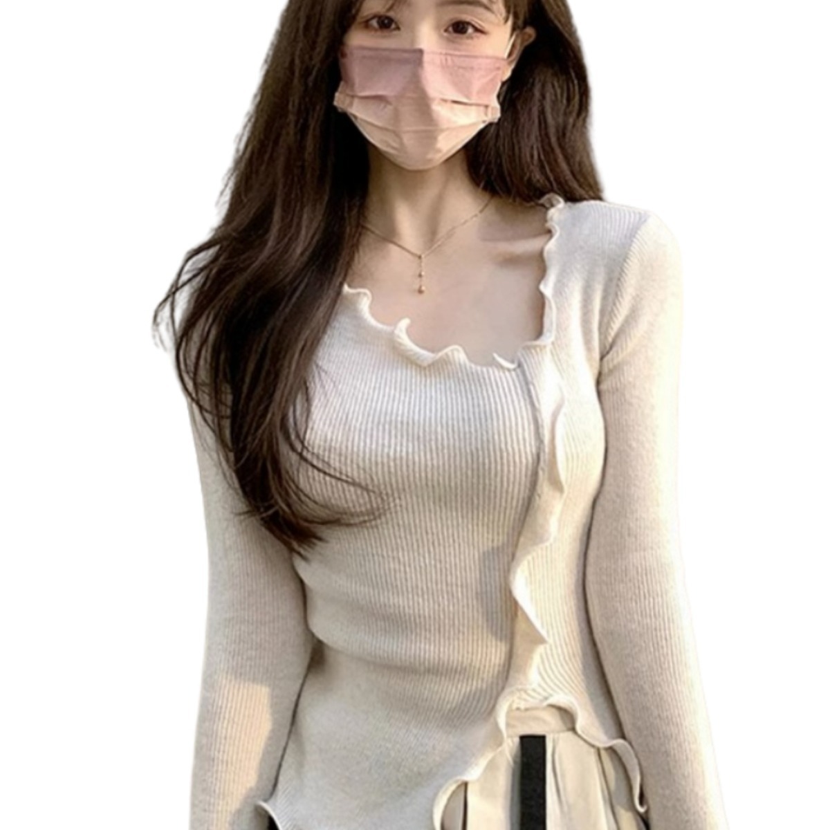 BY10720# 原版版型木耳边不规则针织衫女秋款法式短款内搭打底长袖上衣 服裝批發女裝批發服飾貨源