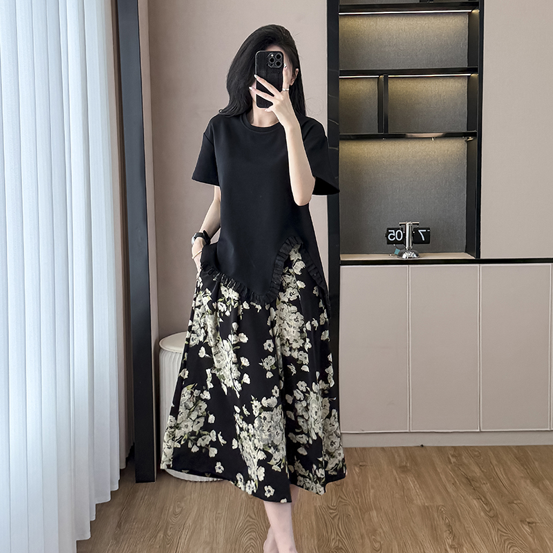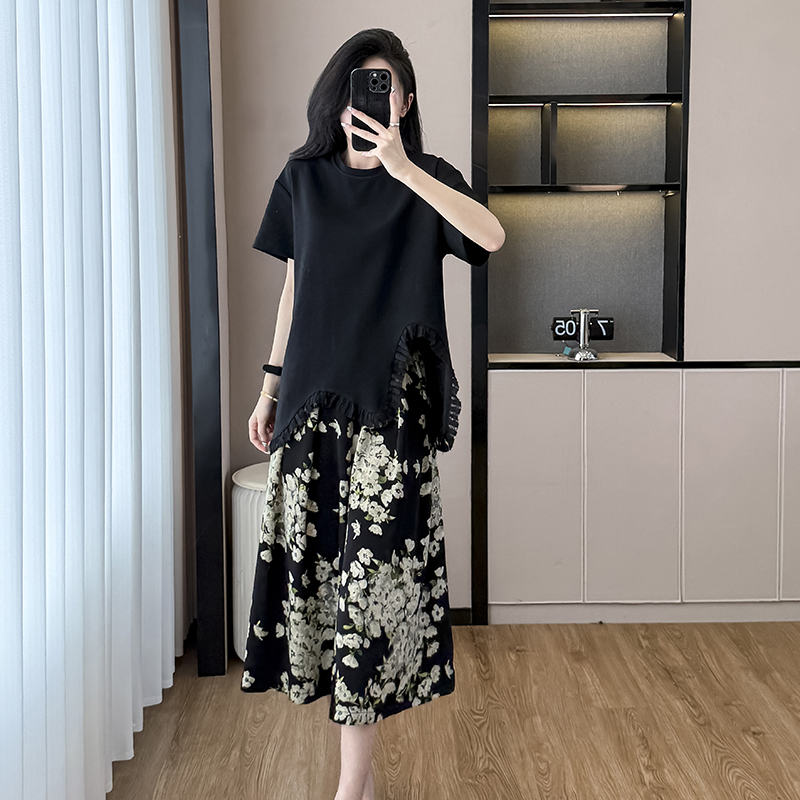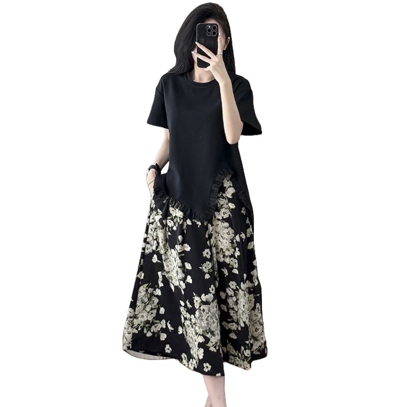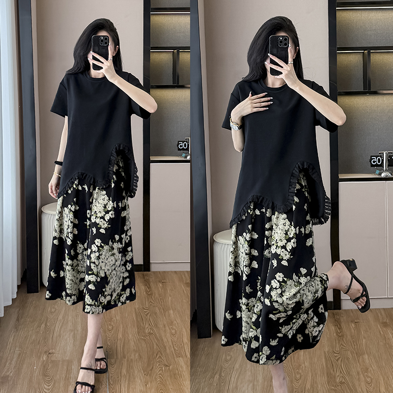 BY13014# 大码女装夏季新款时尚显瘦流苏短袖上衣碎花阔腿裙裤两件套装 服裝批發女裝批發服飾貨源