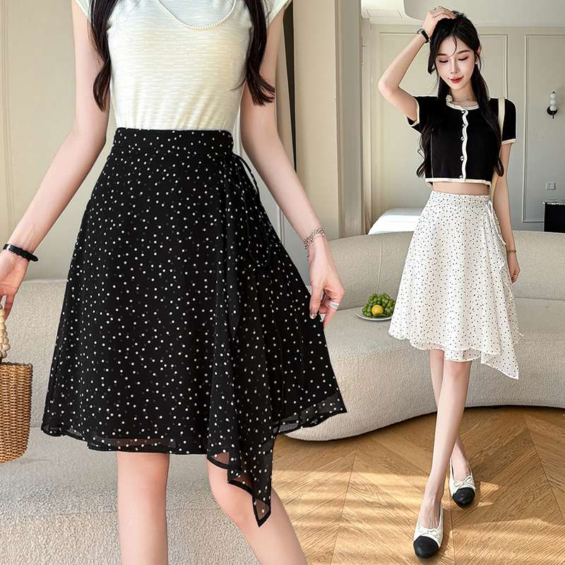 BY13016# 春夏款款甜美波点半身裙女不规则中长款a字裙子 服裝批發女裝批發服飾貨源