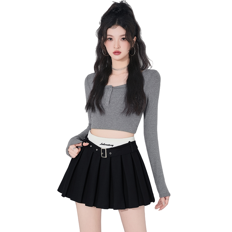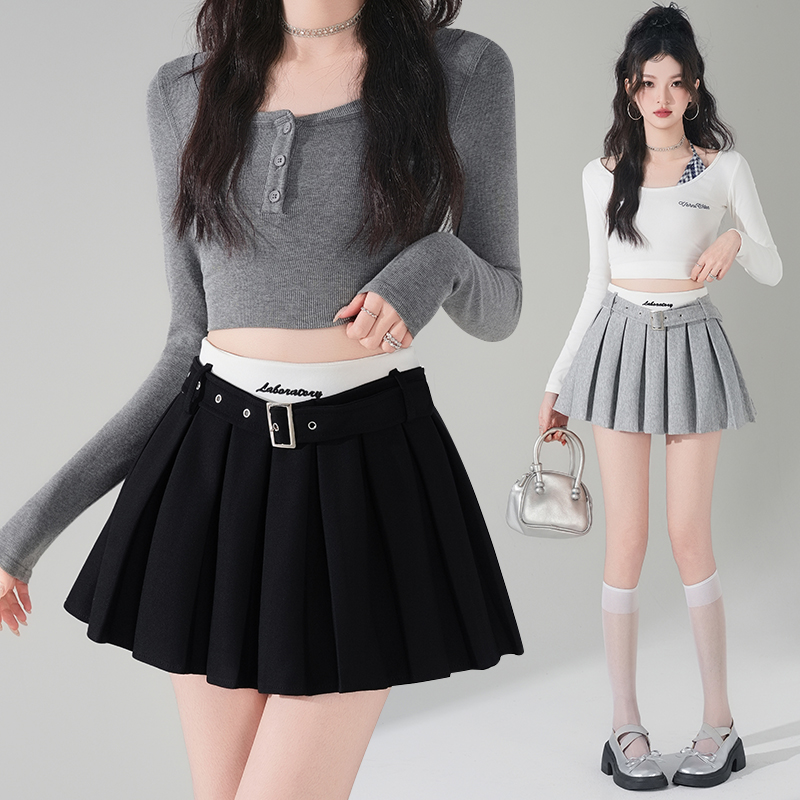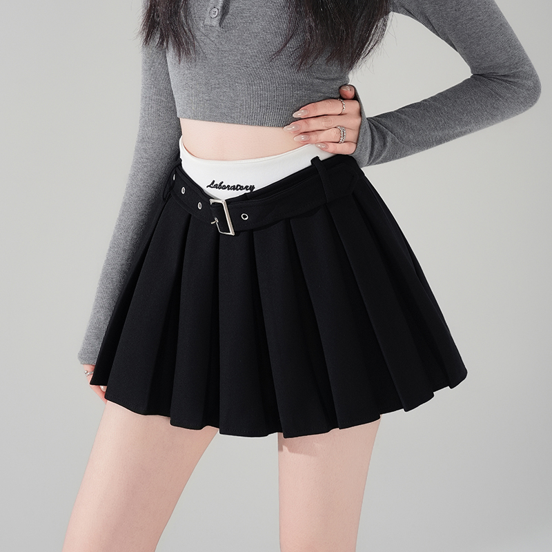 BY13022# 刺绣字母撞色高腰半身裙时尚百褶裙防走光百搭短裙a字裙 服裝批發女裝批發服飾貨源