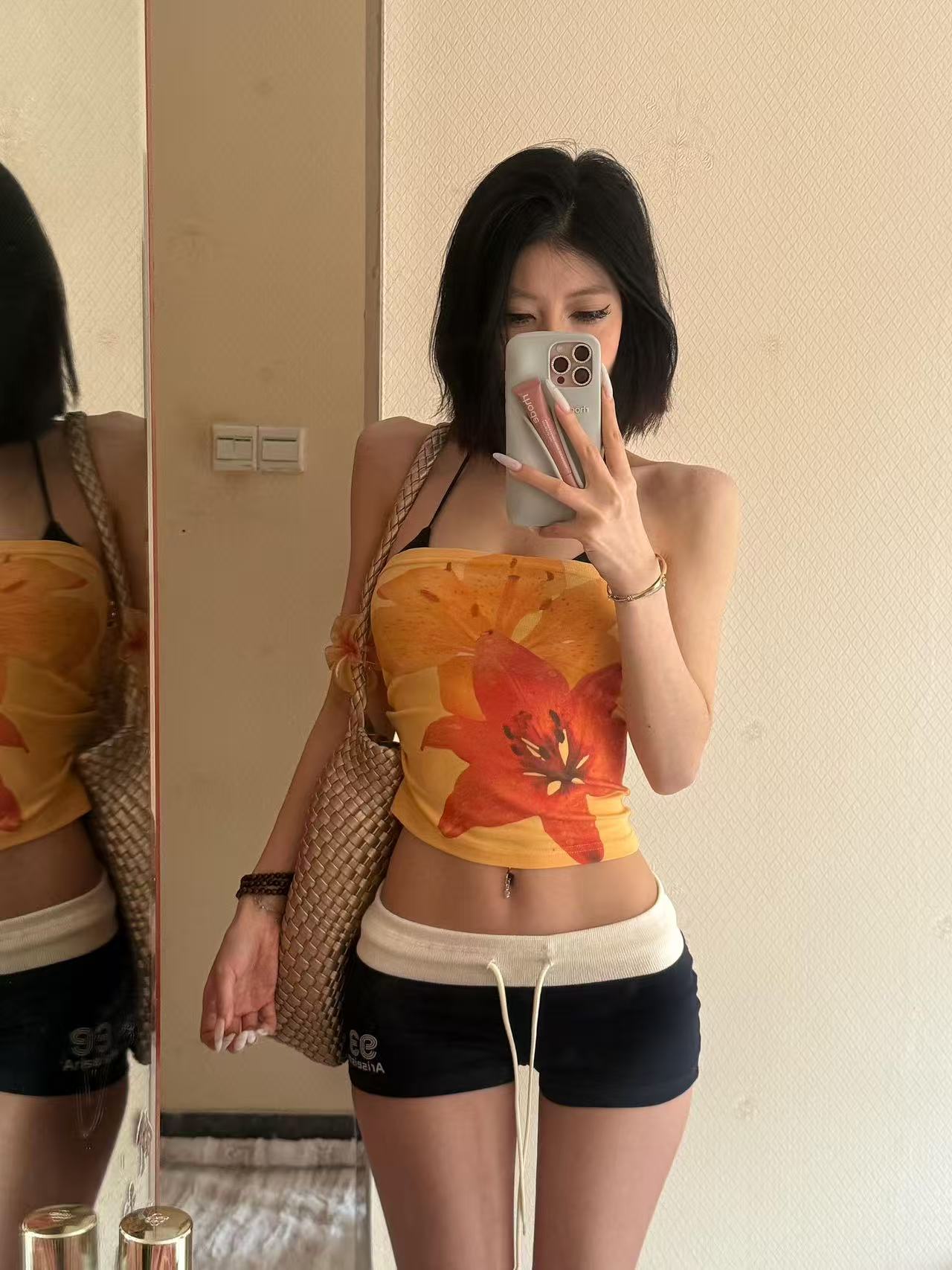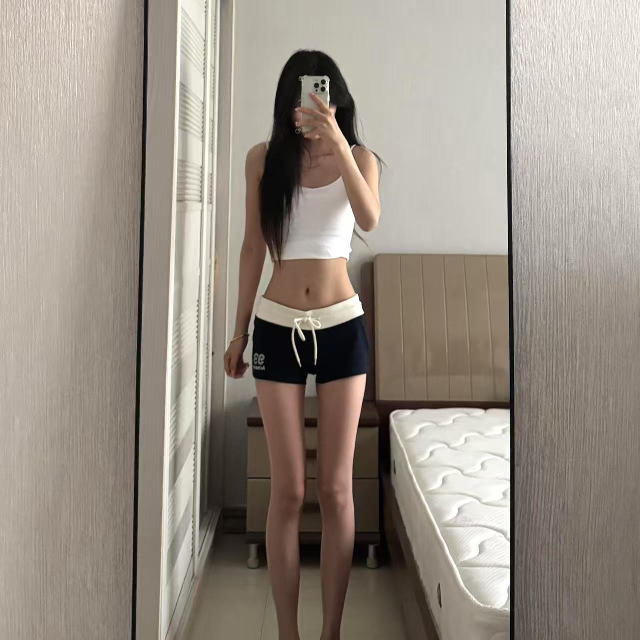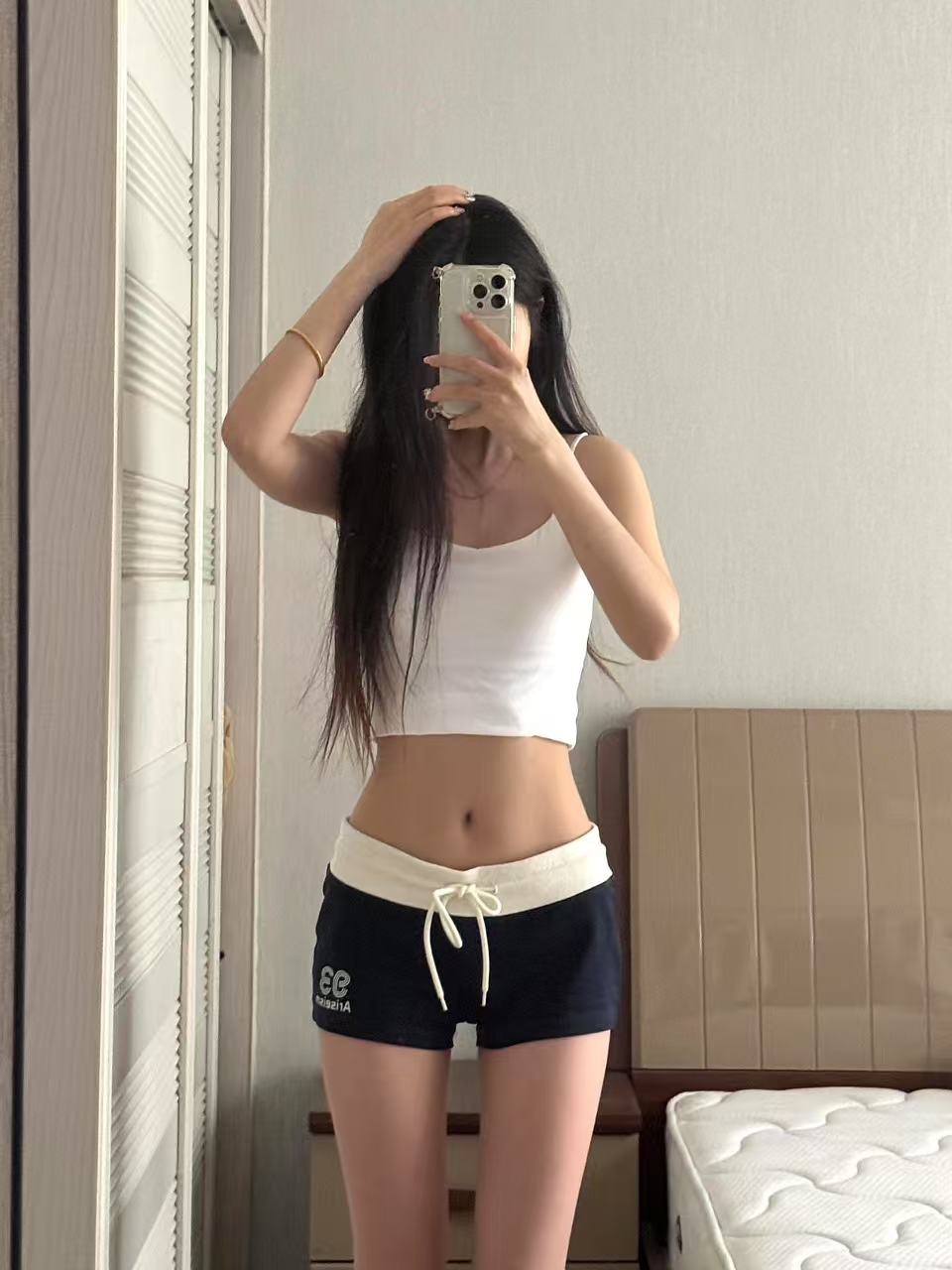 BY13289# 美式辣妹撞色低腰运动短裤女夏季外穿居家休闲三分热裤子 服裝批發女裝批發服飾貨源