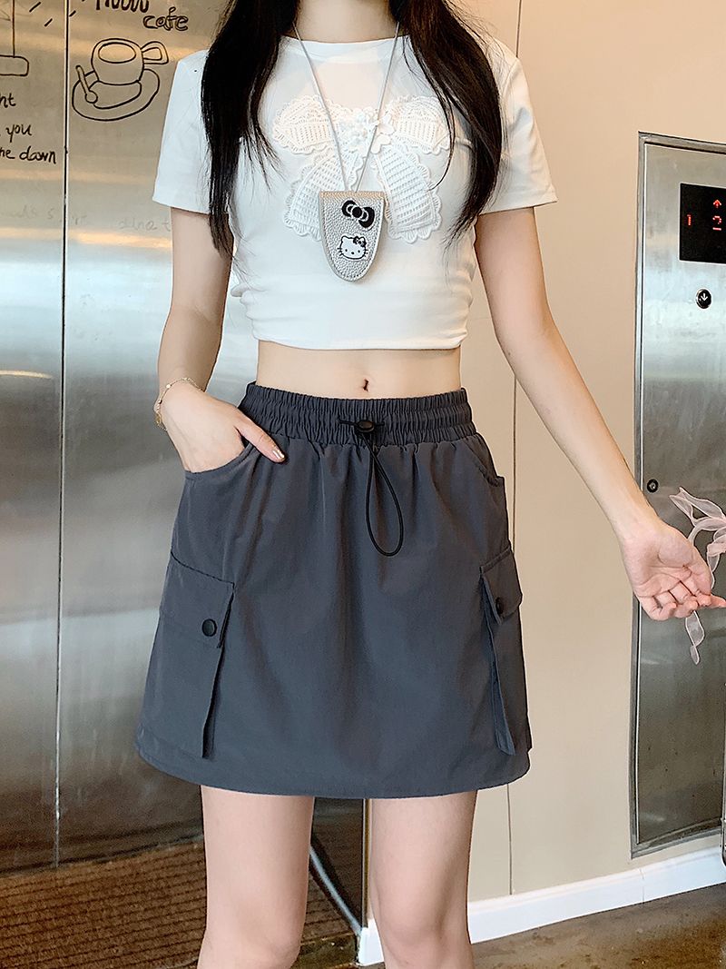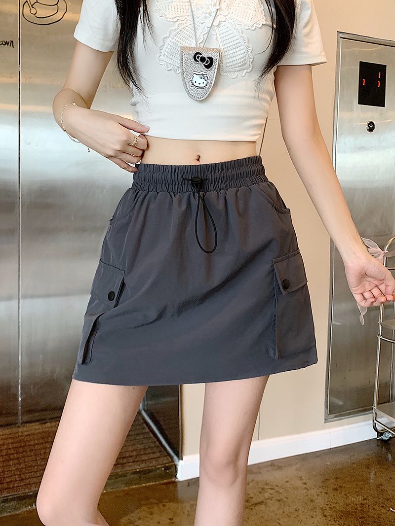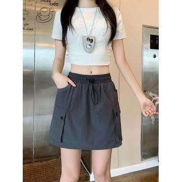 BY13303# 立体腰工装半身裙女夏季高腰a字阔腿显瘦美式速干短裙裤 服裝批發女裝批發服飾貨源