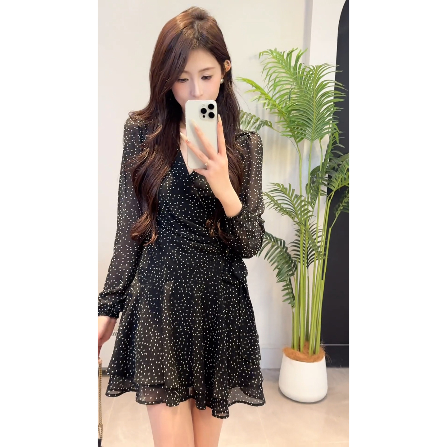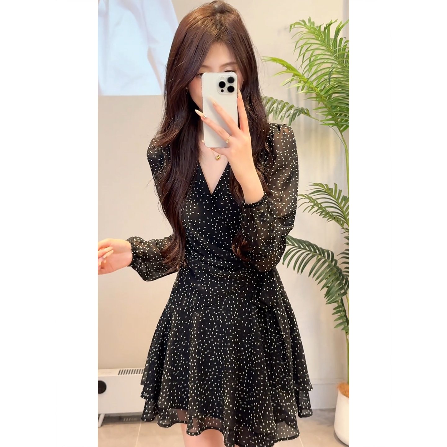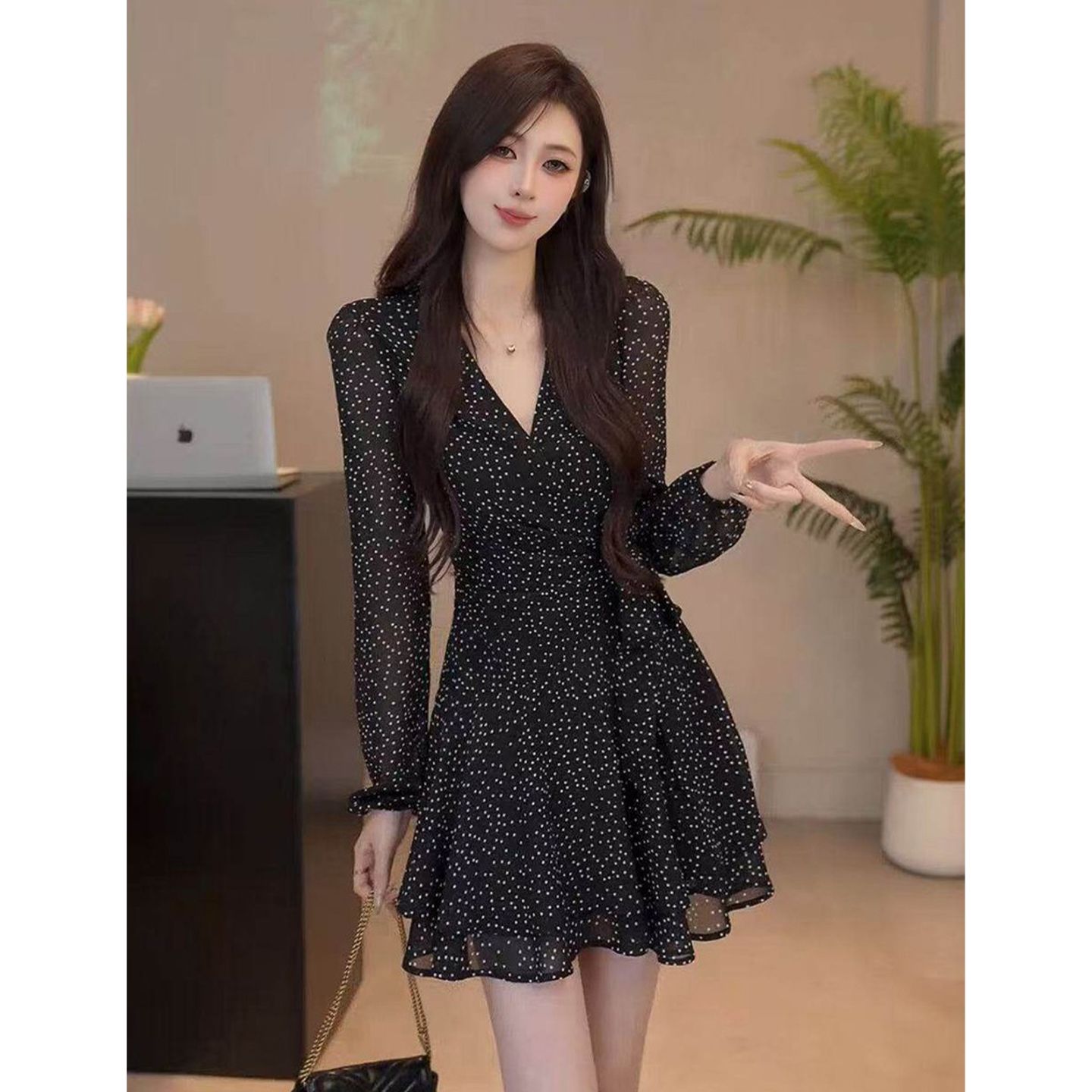 BY13346# 法式黑色波点碎花连衣裙子女夏装新款早春季特别漂亮掐腰短裙 服裝批發女裝批發服飾貨源