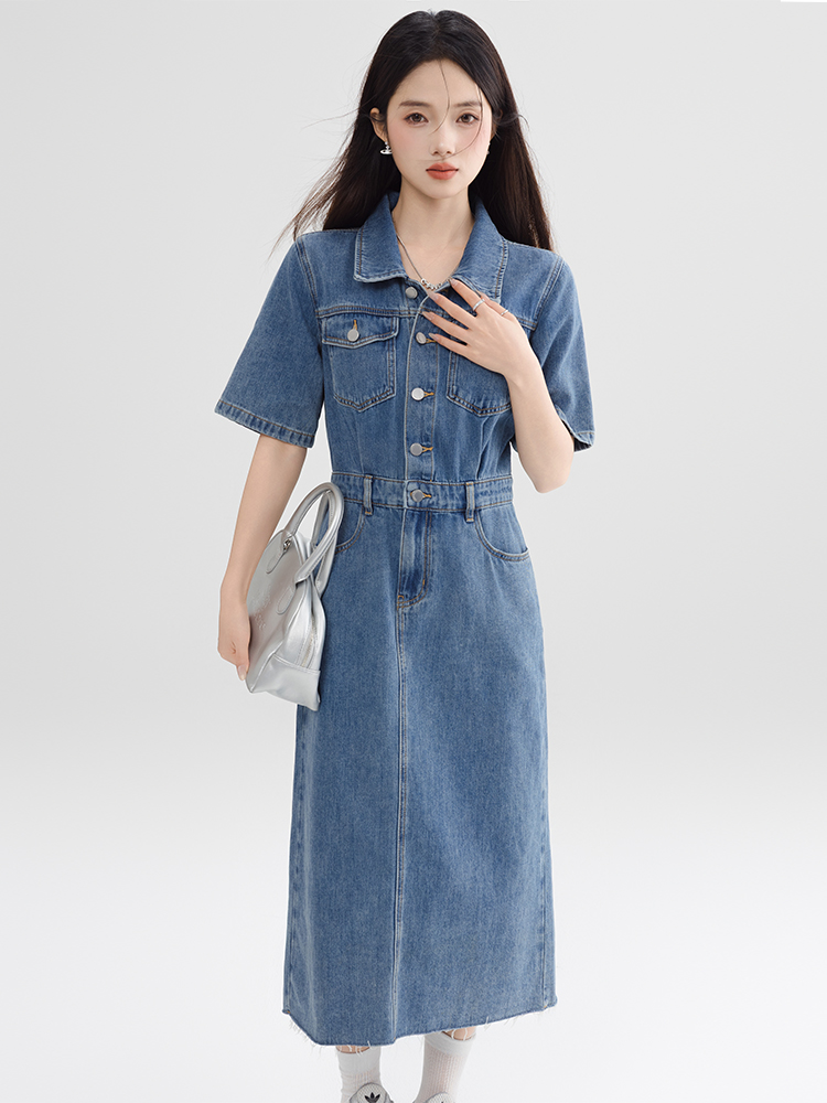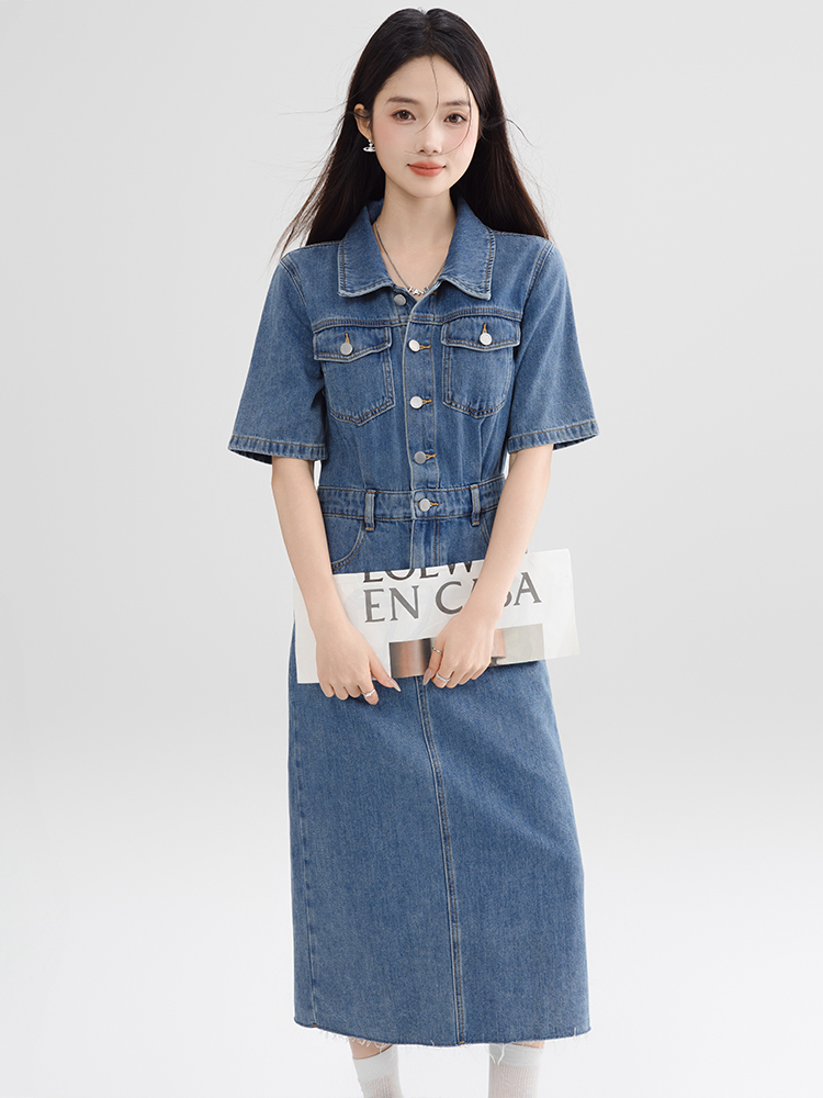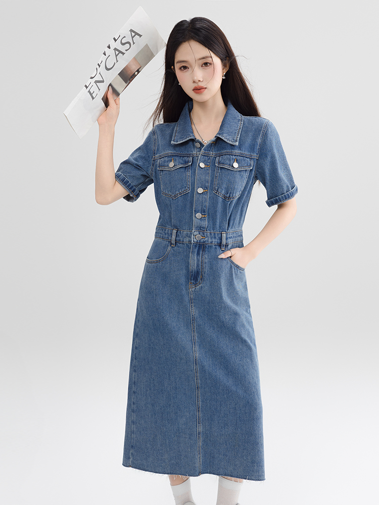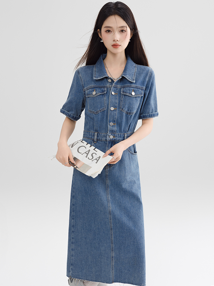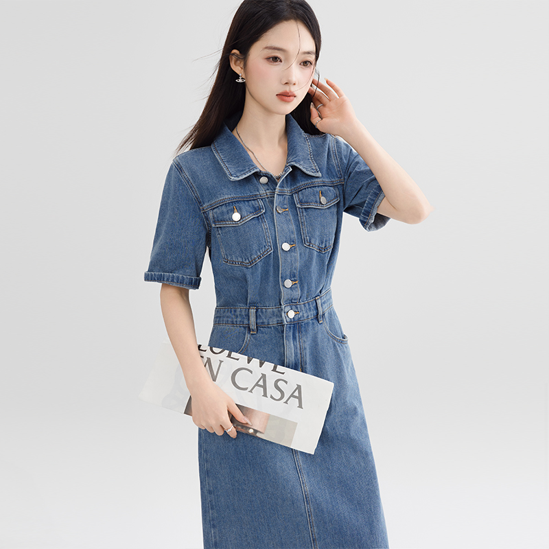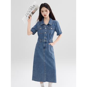 BY13363# 复古连衣裙气质高端女神范高级感夏季新款女装拉毛短袖牛仔裙 服裝批發女裝批發服飾貨源