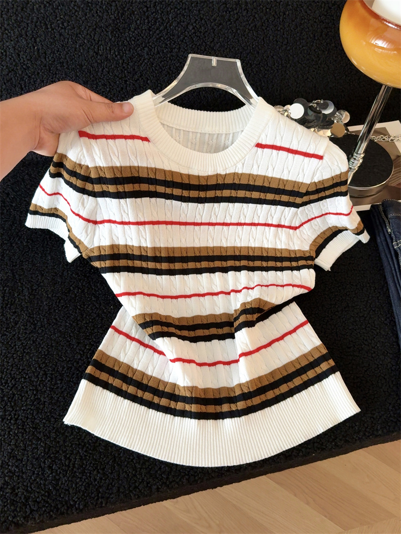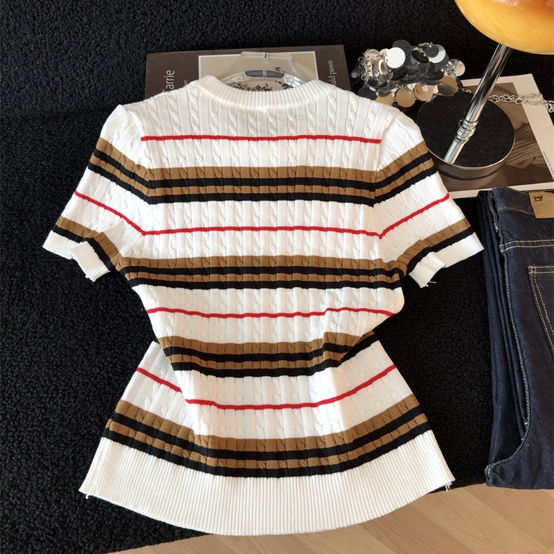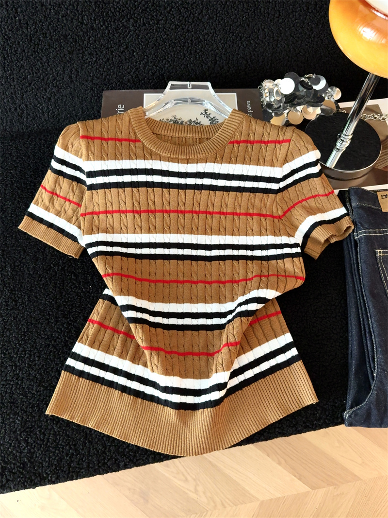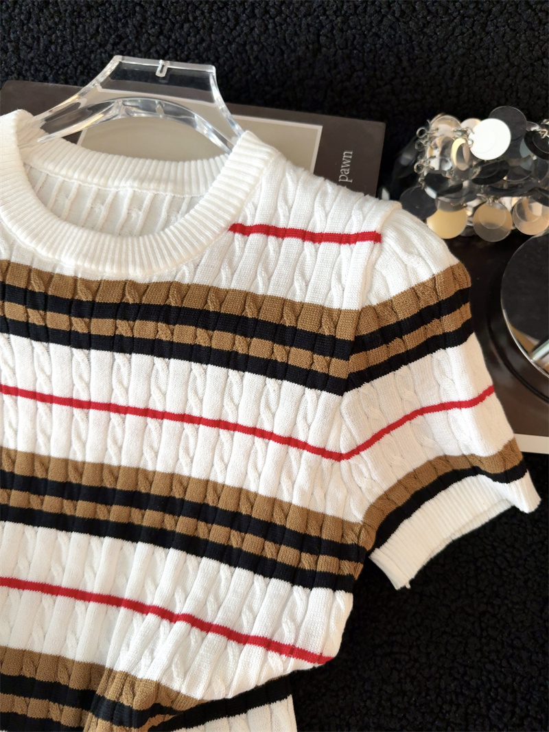 BY13395# 原创春夏季新款上新淑条设计感纹理气质风百搭修身针织衫女潮 服裝批發女裝批發服飾貨源