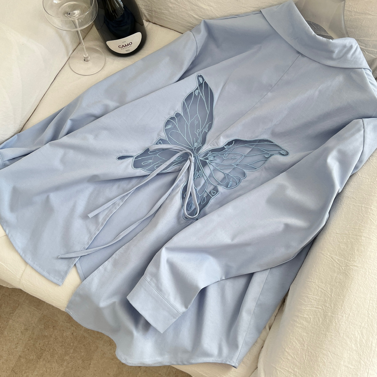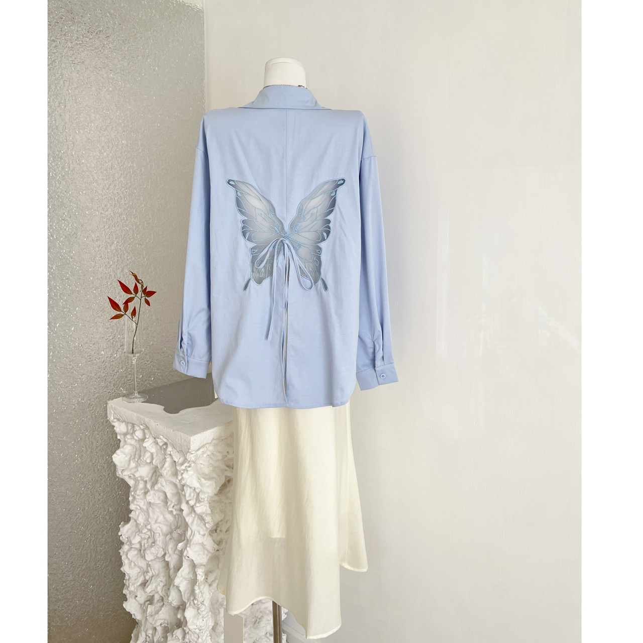BY13417# 蕾英俊蝶序蝴蝶网纱刺绣宽松衬衫女春慵懒风设计感套装 服裝批發女裝批發服飾貨源
