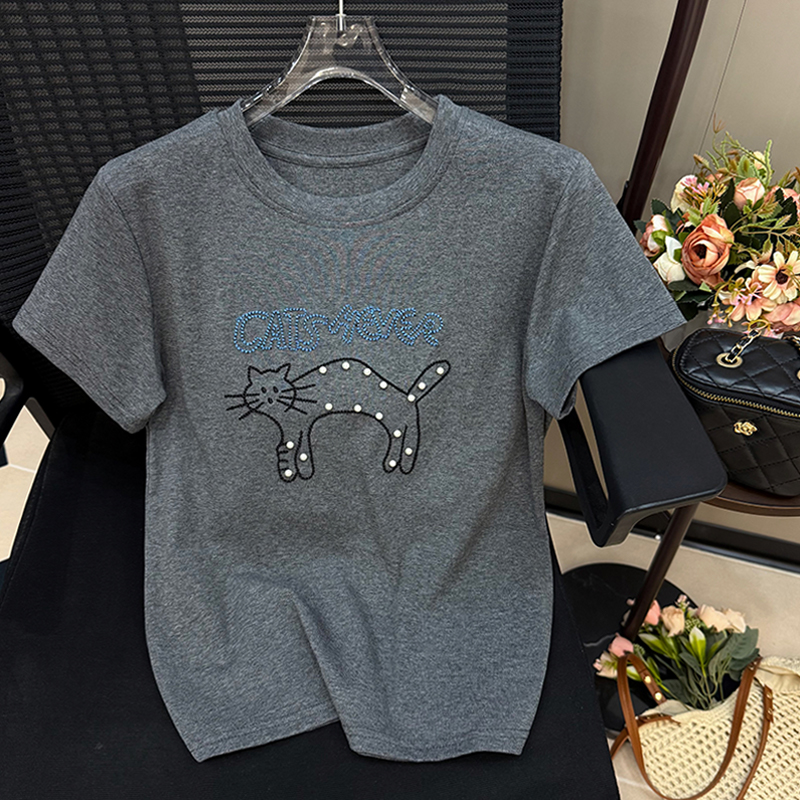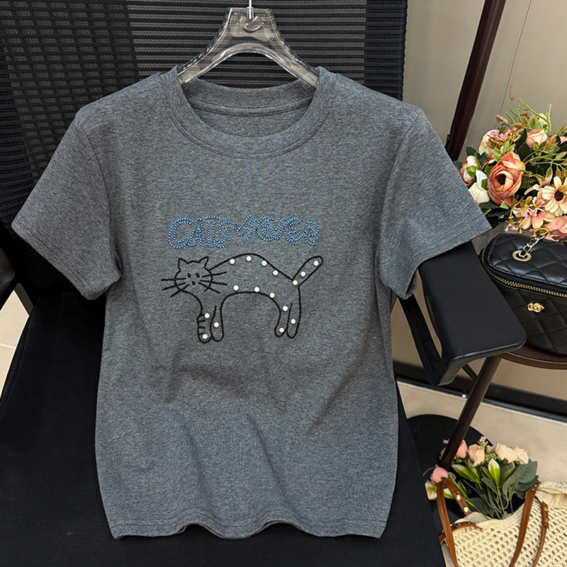 重工钉珠绣花短袖T恤女韩版宽松休闲半袖夏季新款洋气上衣服 服裝批發女裝批發服飾貨源