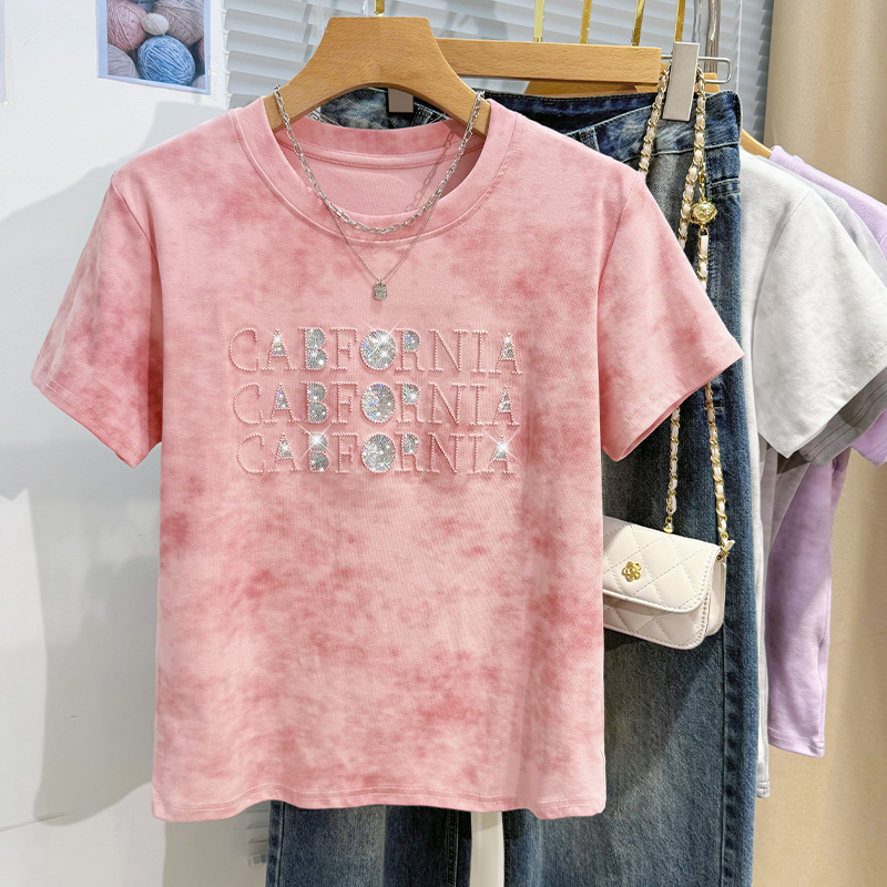 BY13500# 重工字母亮片绣花短袖t恤女夏季韩版宽松休闲圆领半袖上衣服 服裝批發女裝批發服飾貨源