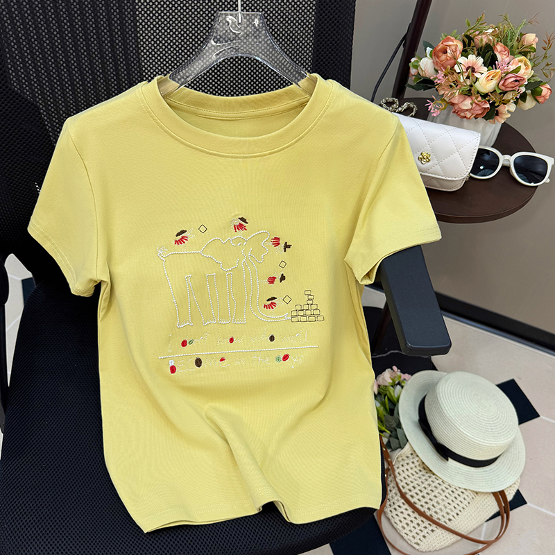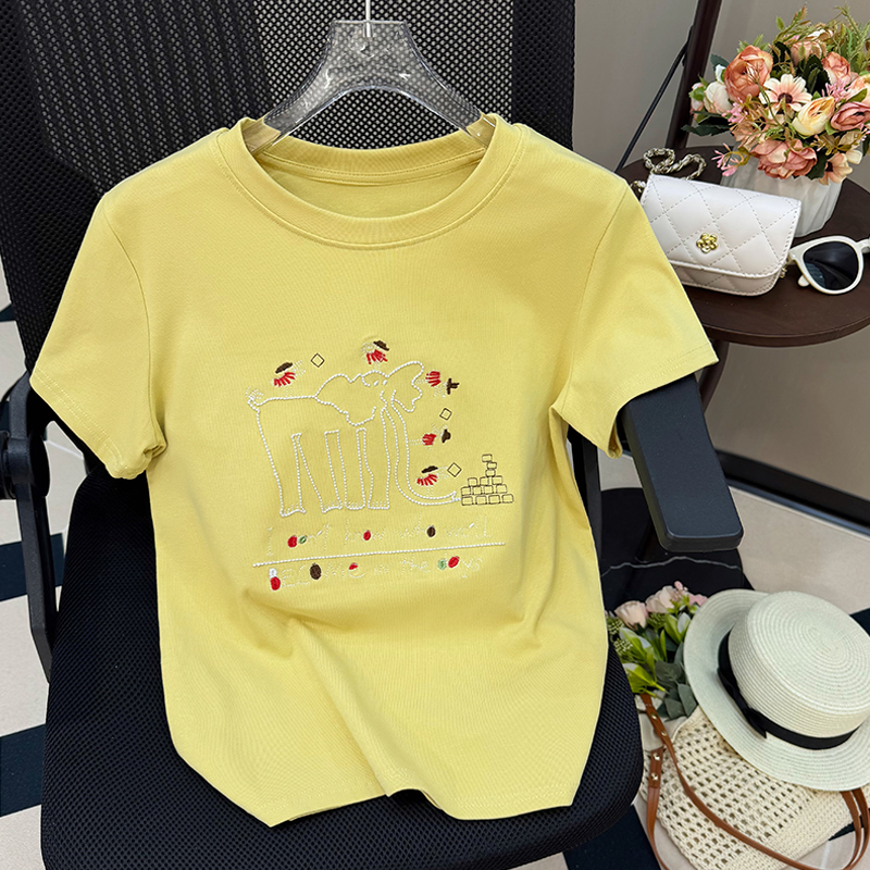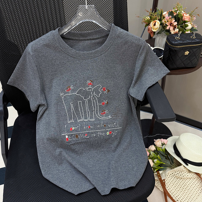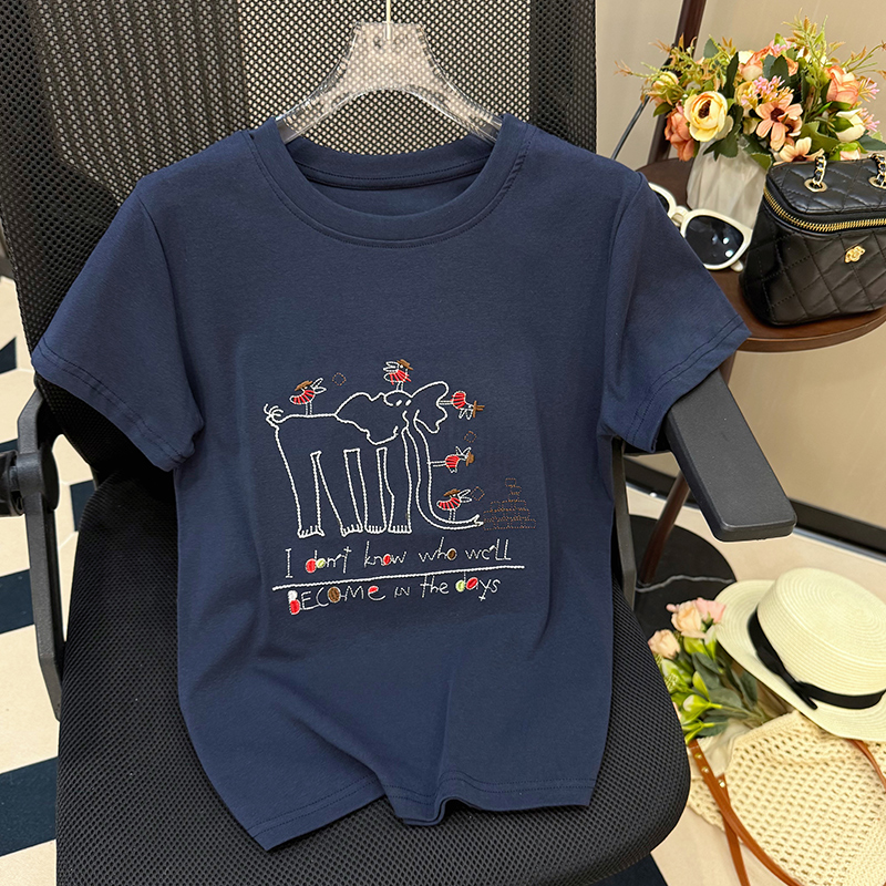 BY13503# 刺绣小象T恤女夏正肩短袖超火爆款正肩半袖韩版休闲上衣 服裝批發女裝批發服飾貨源