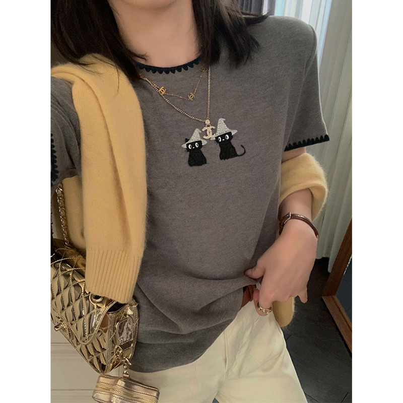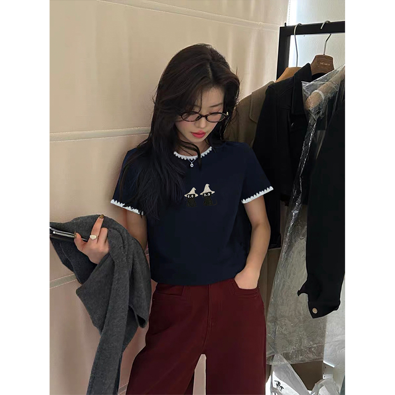 设计感猫咪刺绣t恤女夏季宽松休闲短袖韩版百搭显瘦半袖上衣 服裝批發女裝批發服飾貨源