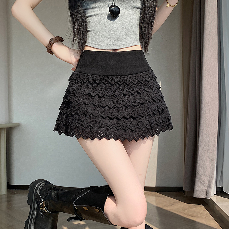 新款甜心少女的裙摆纯色超蕾丝花边蛋糕短款百搭裙裤子 服裝批發女裝批發服飾貨源