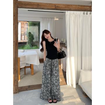 Home > 韩版套装 > 纯欲设计感露腰系带蝴蝶结背心+提花垂感阔腿裤 服裝批發女裝批發服飾貨源