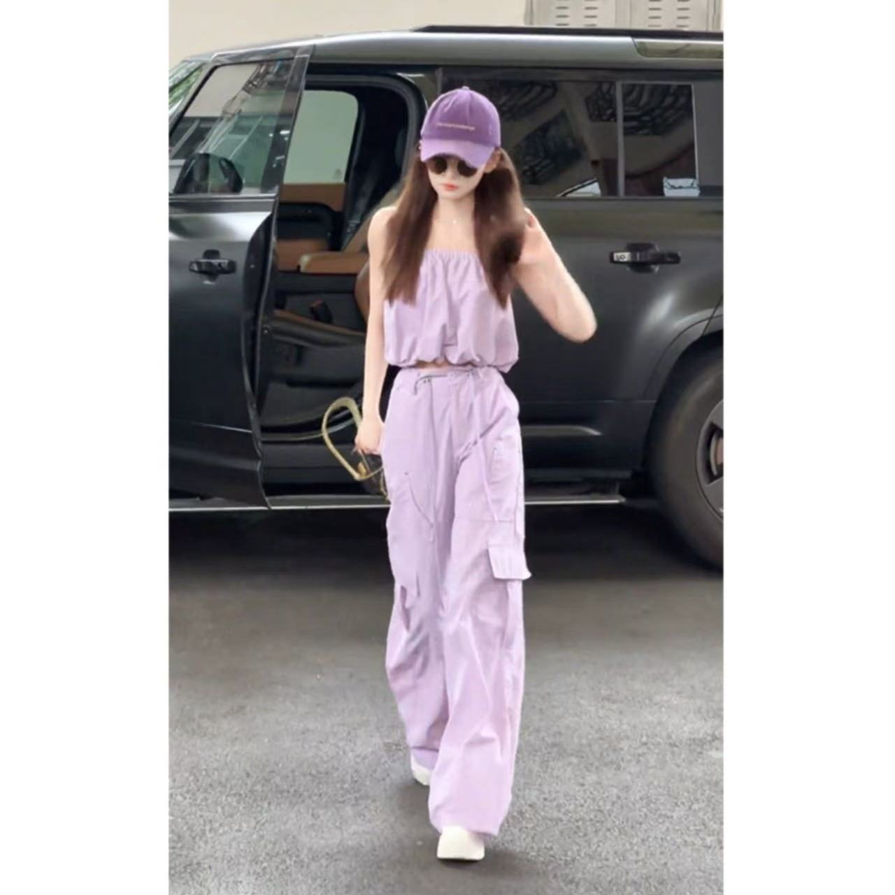 FA56857# 夏季辣妹短款吊带上衣女工装裤套装ins潮流甜酷小众两件套爆款